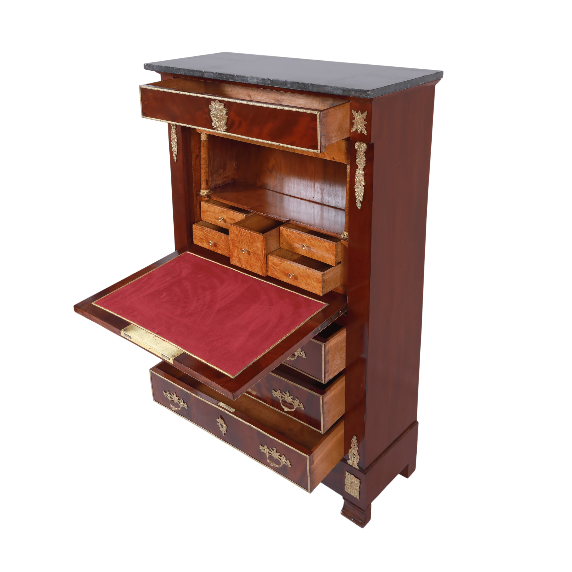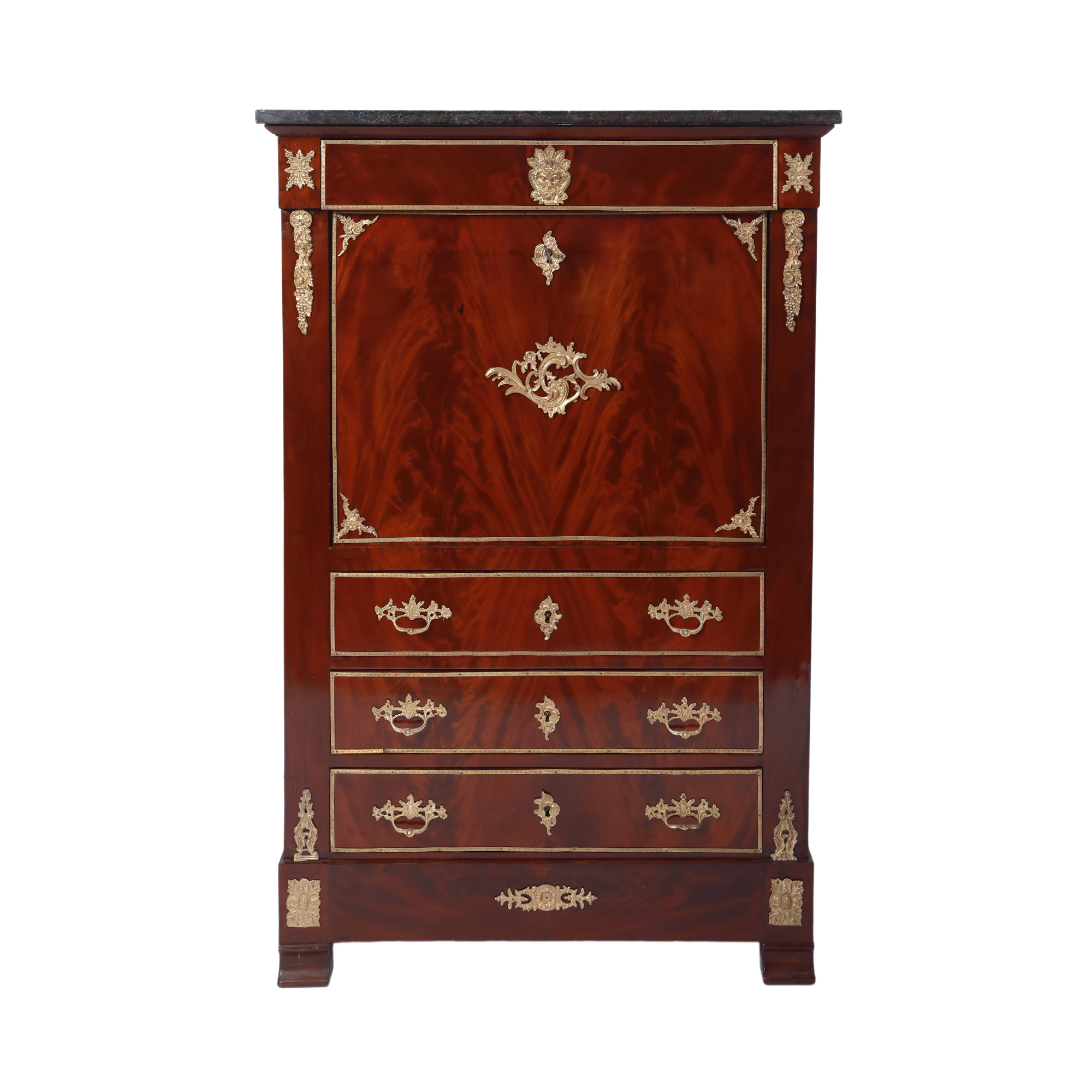 57. Secrétaire Empire, din lemn furniruit cu rădăcină de nuc și detalii din bronz aurit, cca. 1860-1880, provine din casa boierului Miclescu