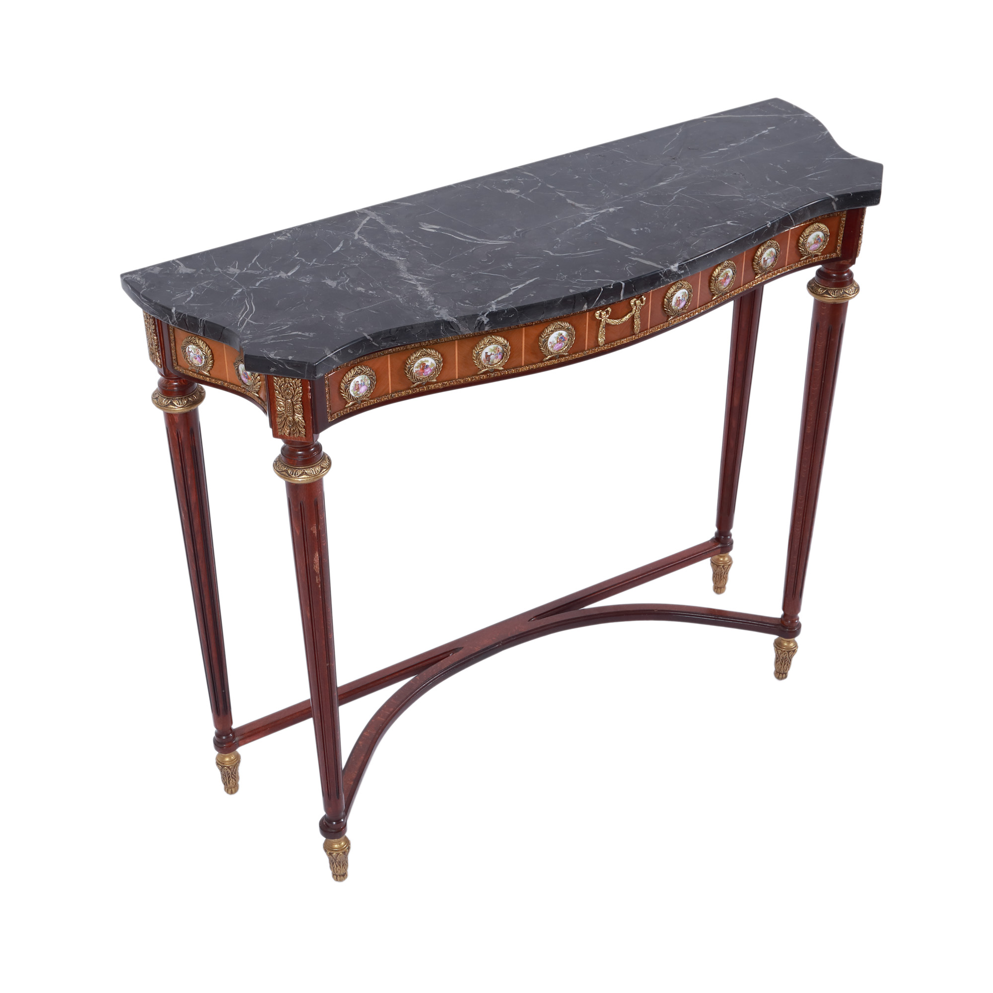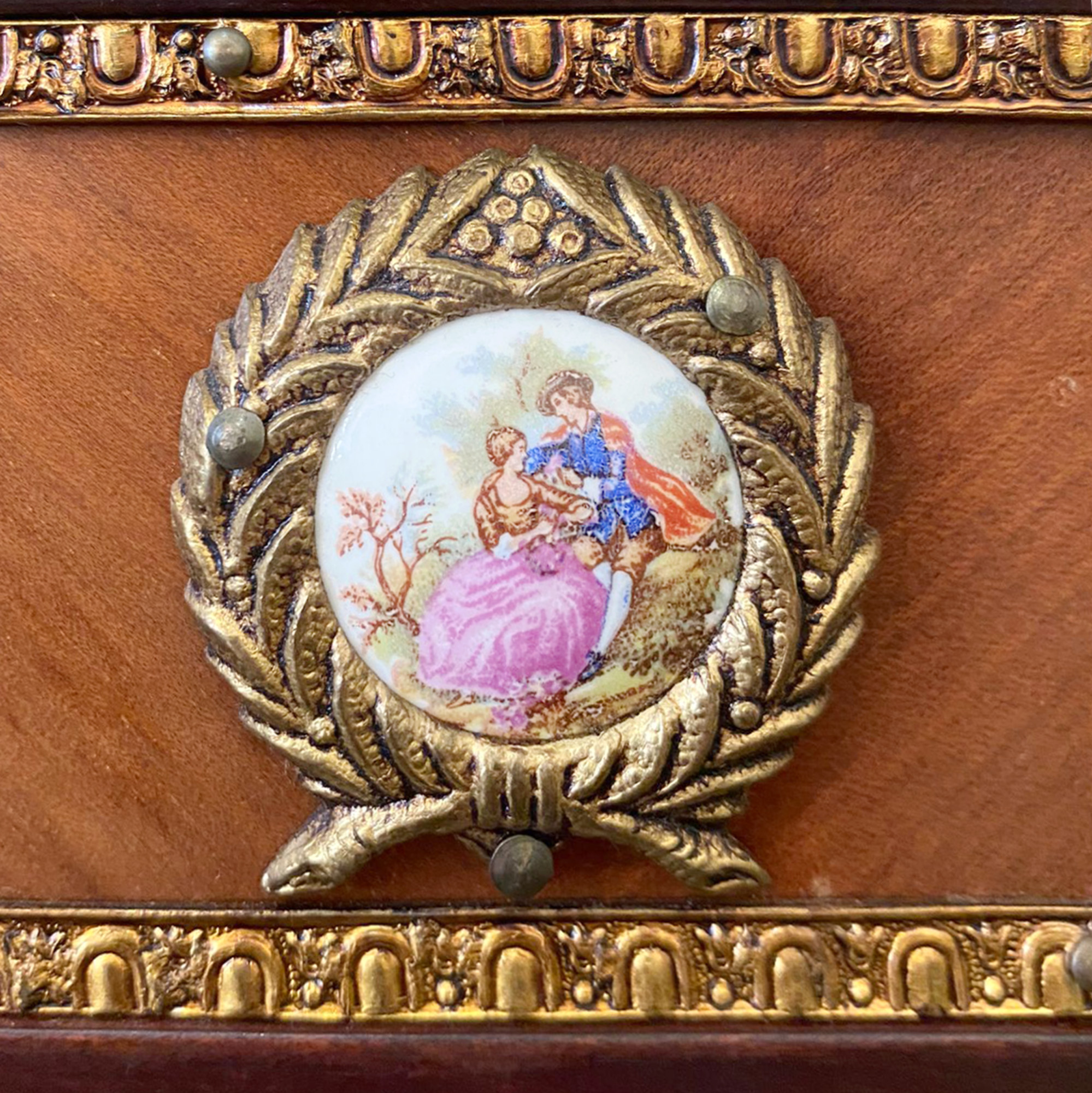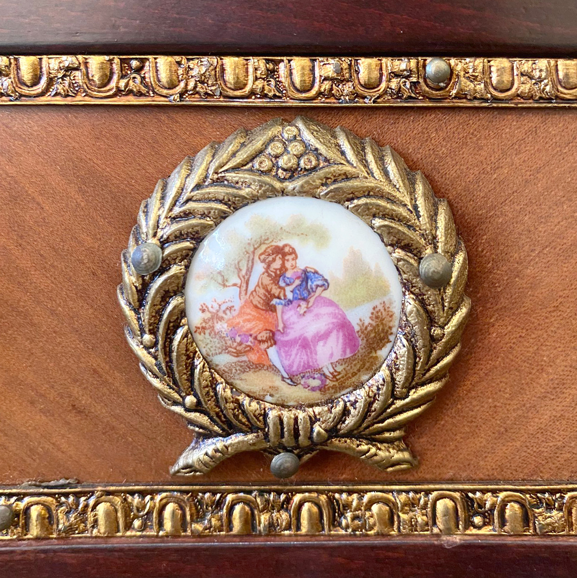 15. Superbă oglindă cu consolă Louis XV, decorată cu medalioane din porțelan pictat, ilustrând scene galante, Stil Rococo, prima jumătate a sec. XX