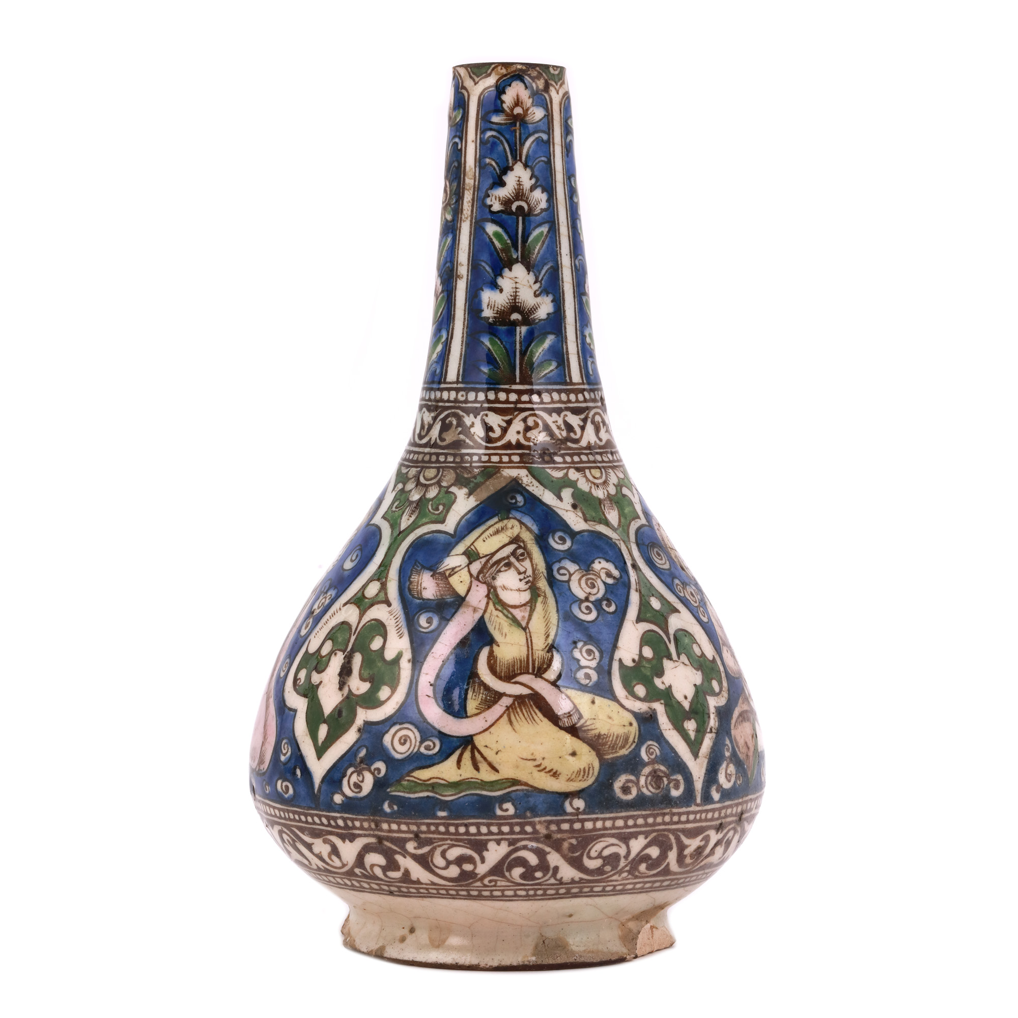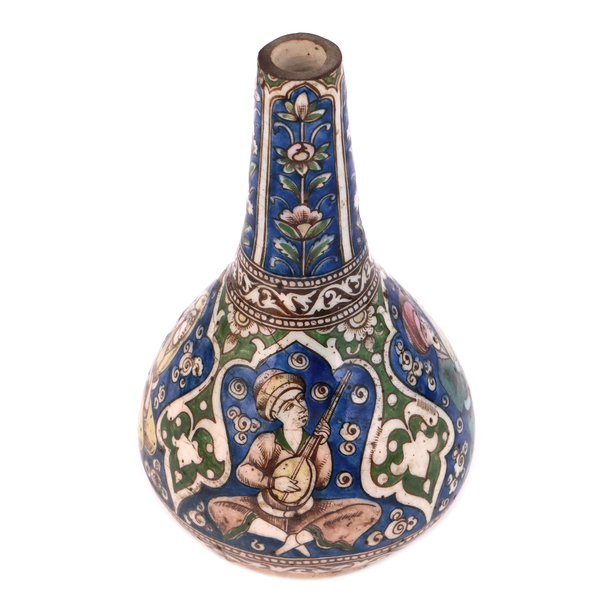 87. Vas persan din ceramică smălțuită, decorat cu muzicieni, Qajar, începutul sec. XX