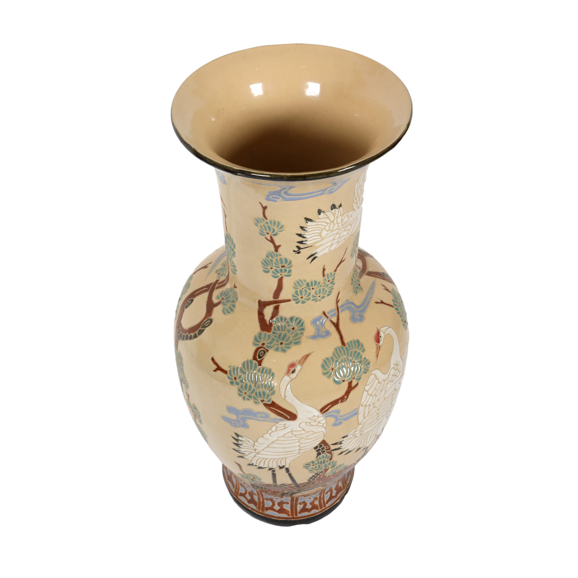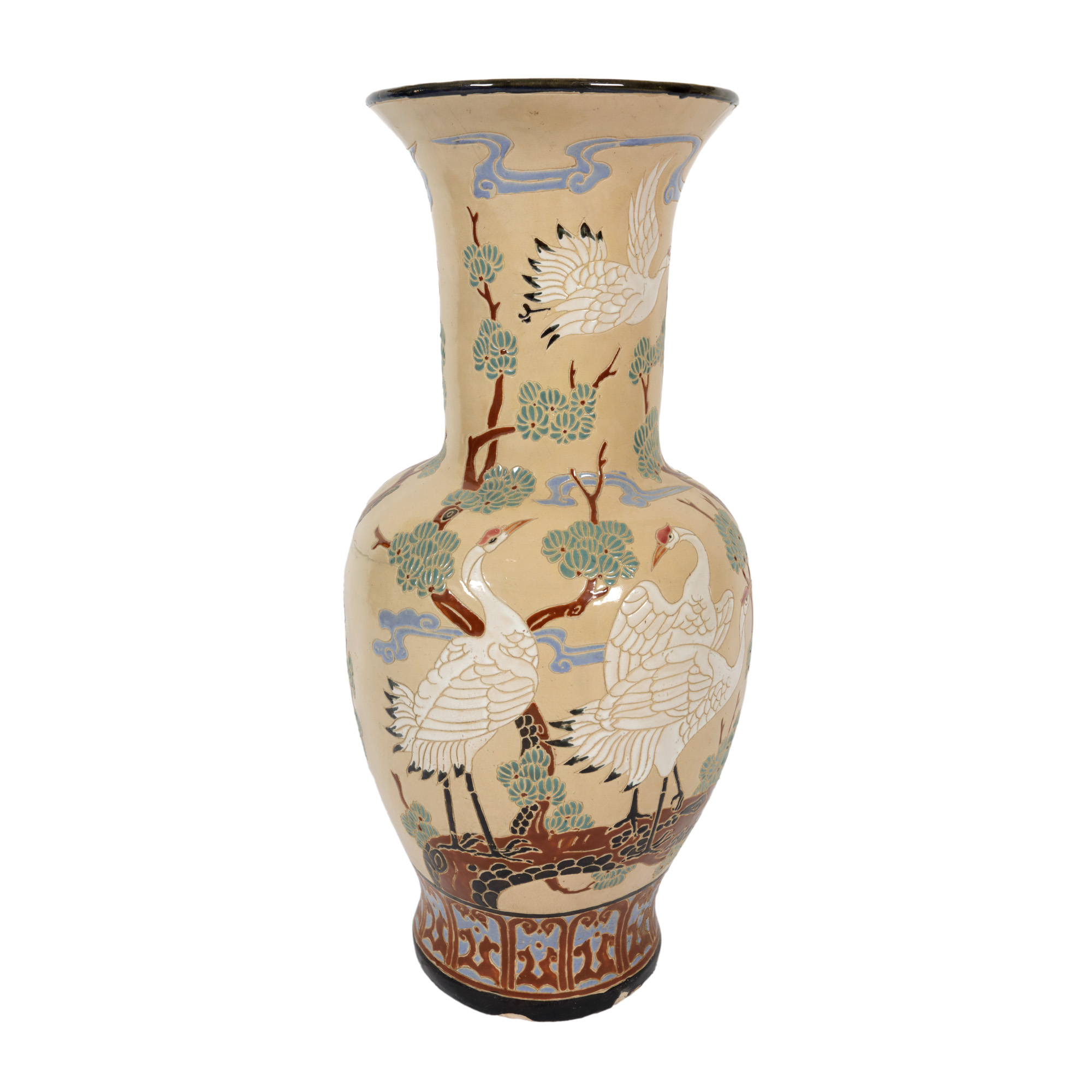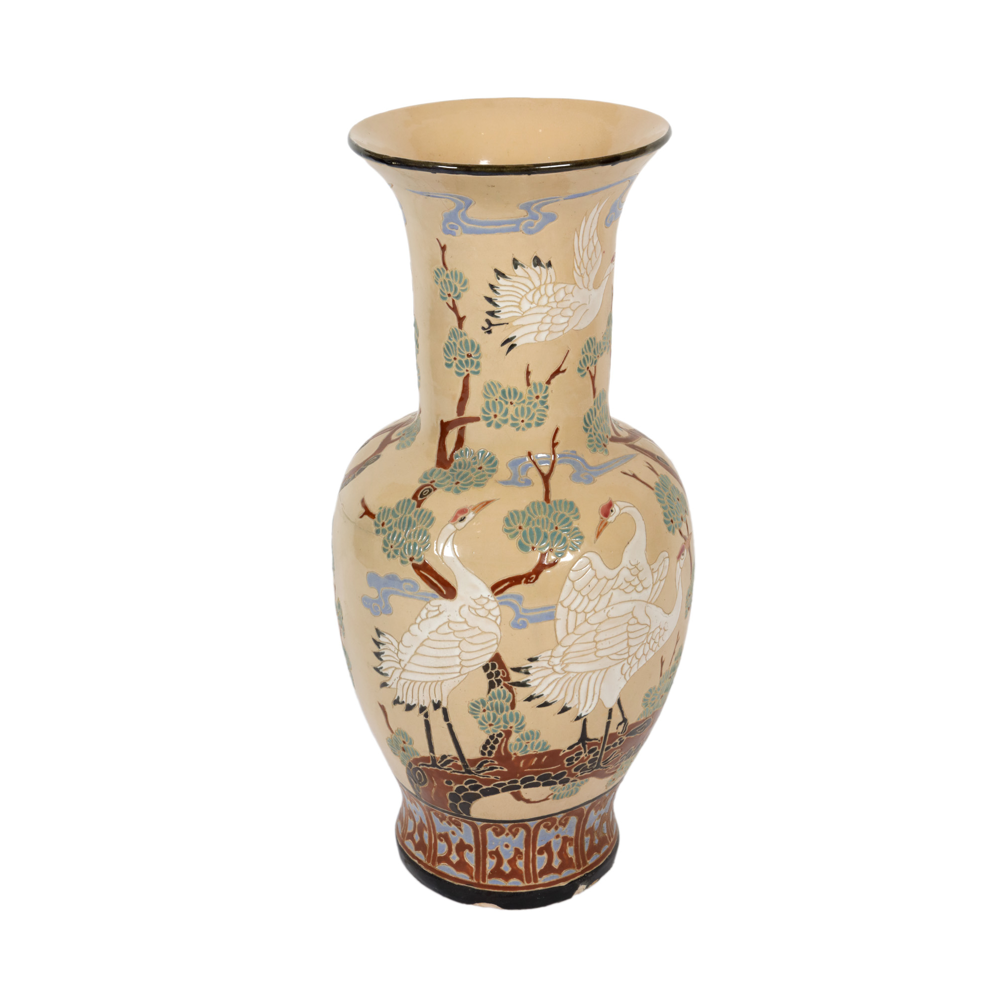 97. Vază din ceramică glazurată, cu decor japonizant reprezentând cocori [a doua jumătate a sec. XX]
