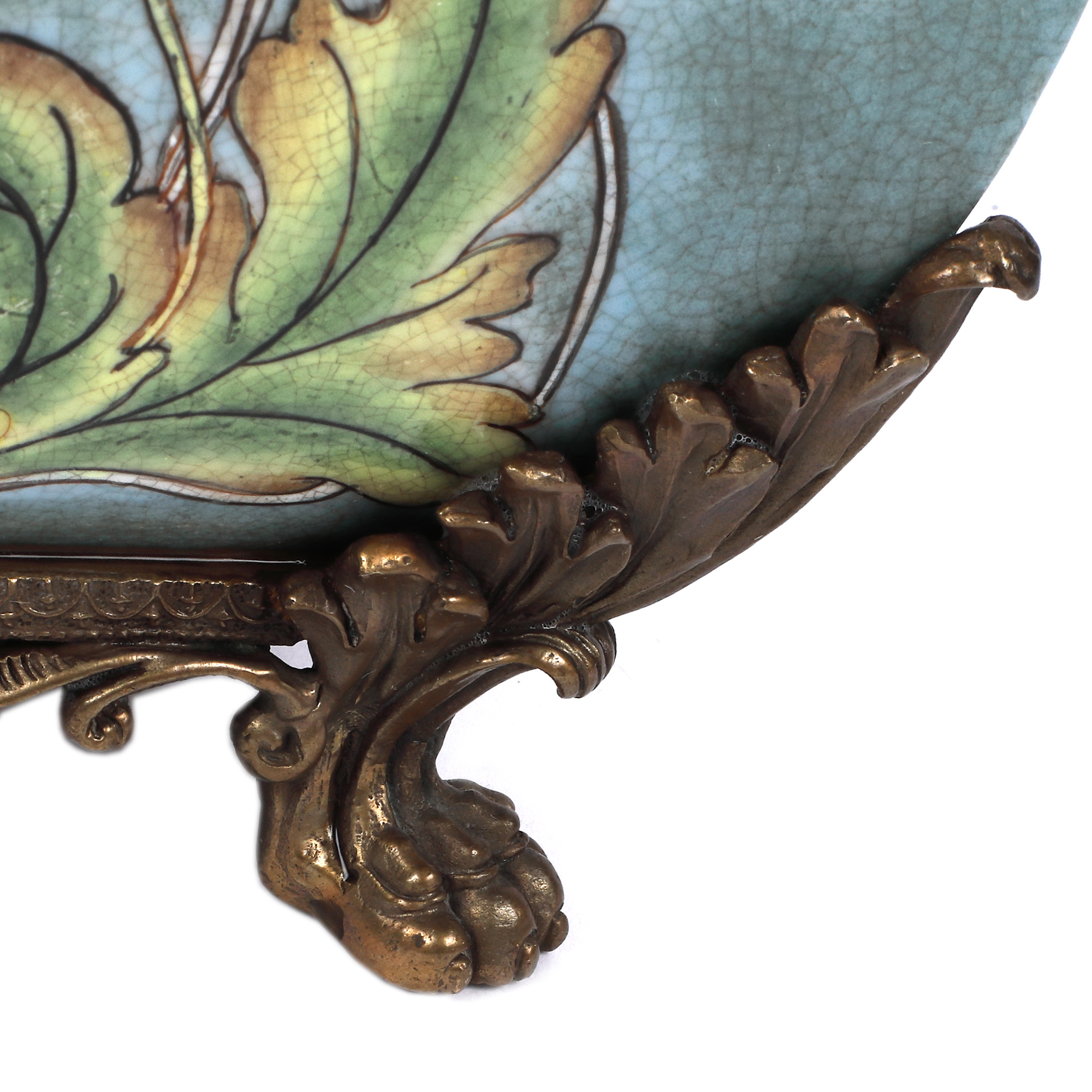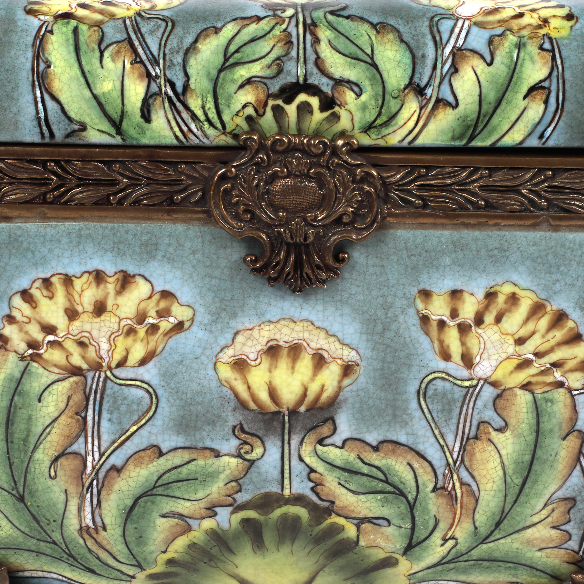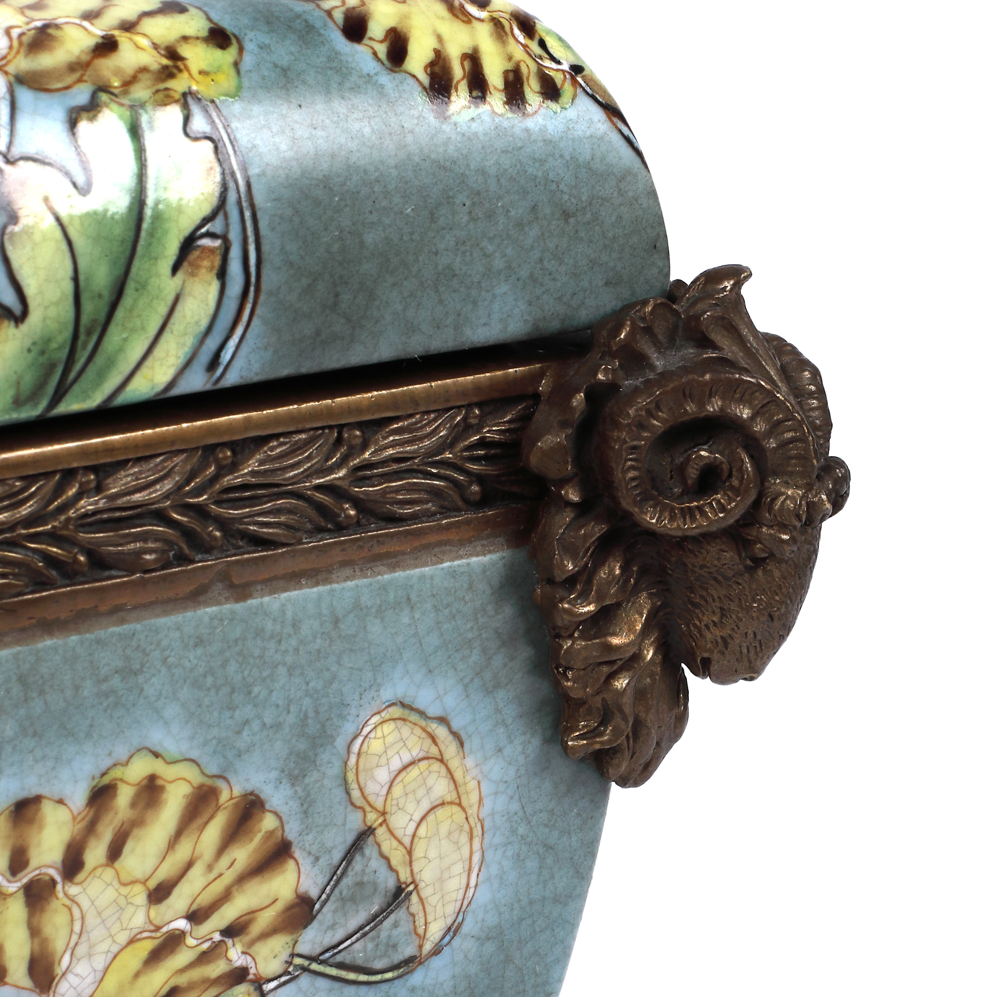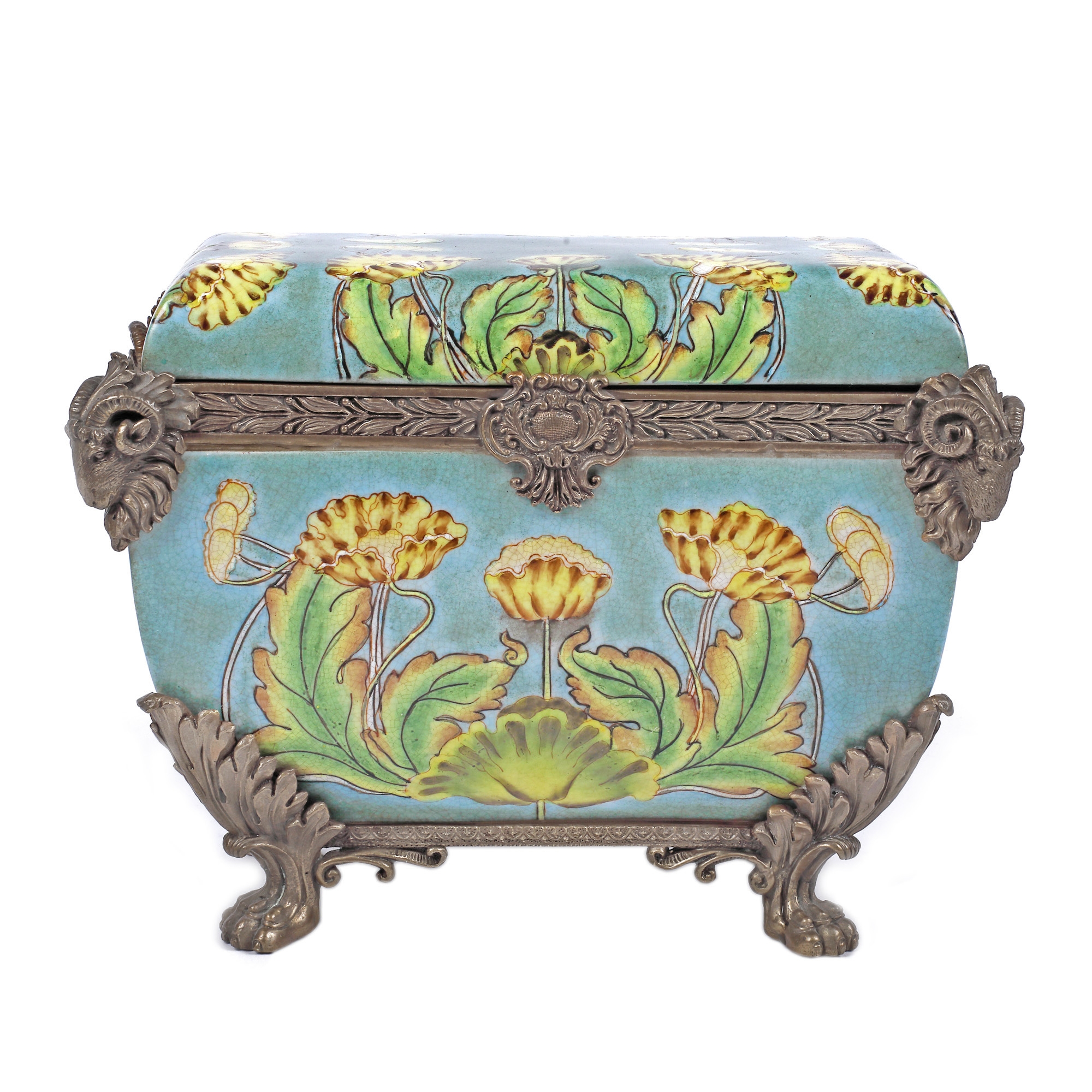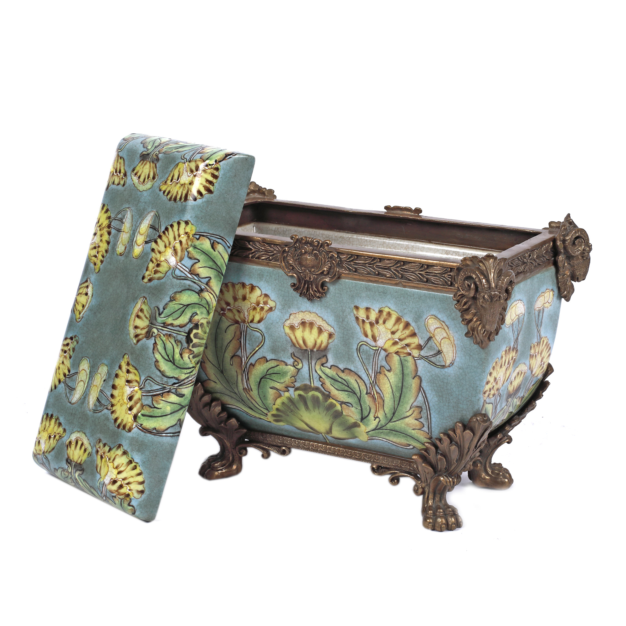 101. Cutie cu capac din ceramică, în stil Art Nouveau, decorat cu elemente din bronz, prima jumătate a sec. XX