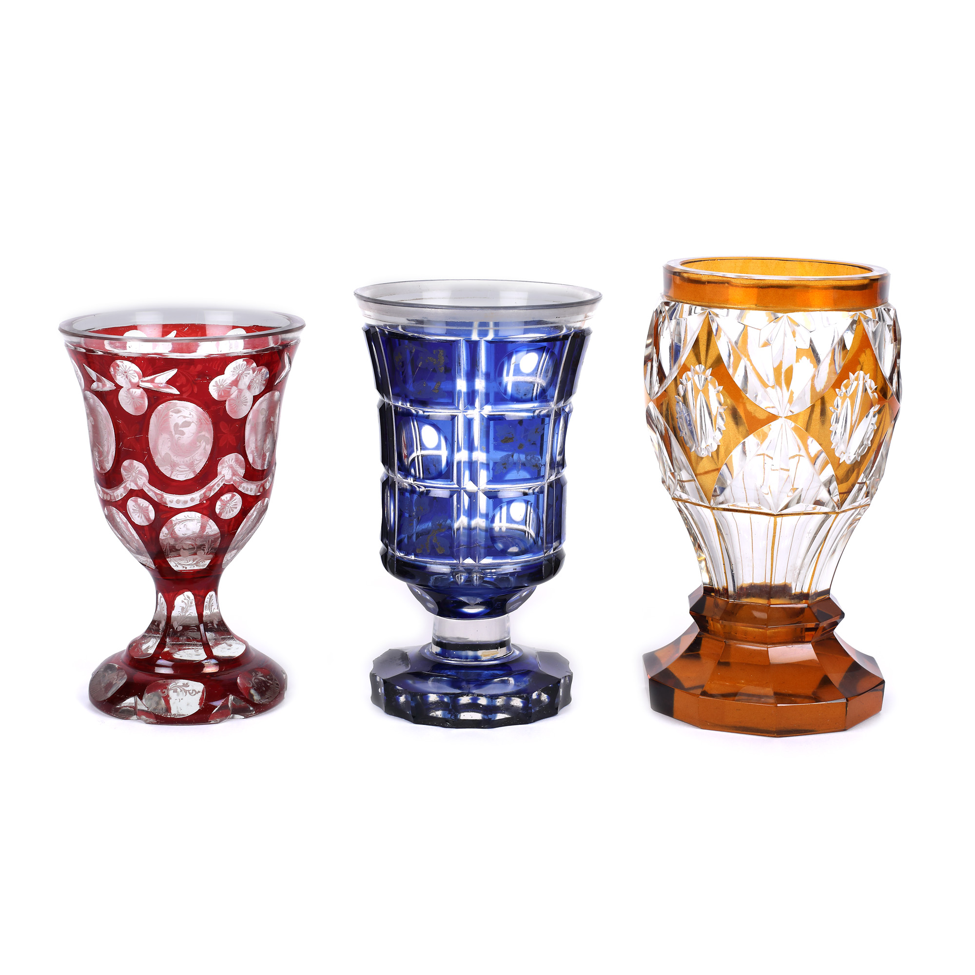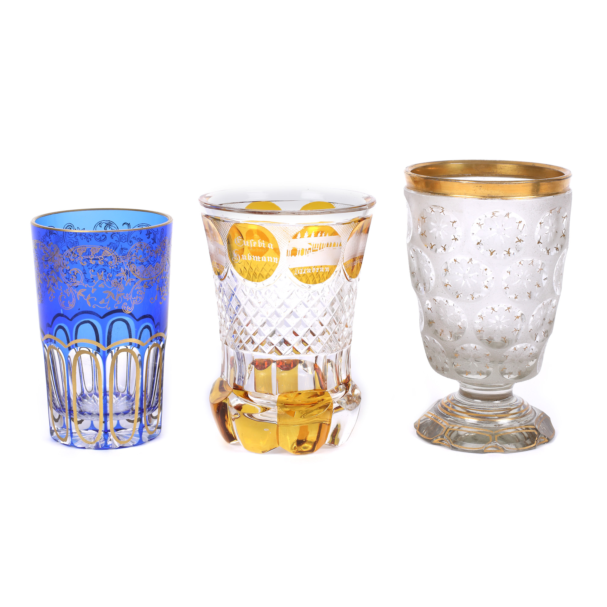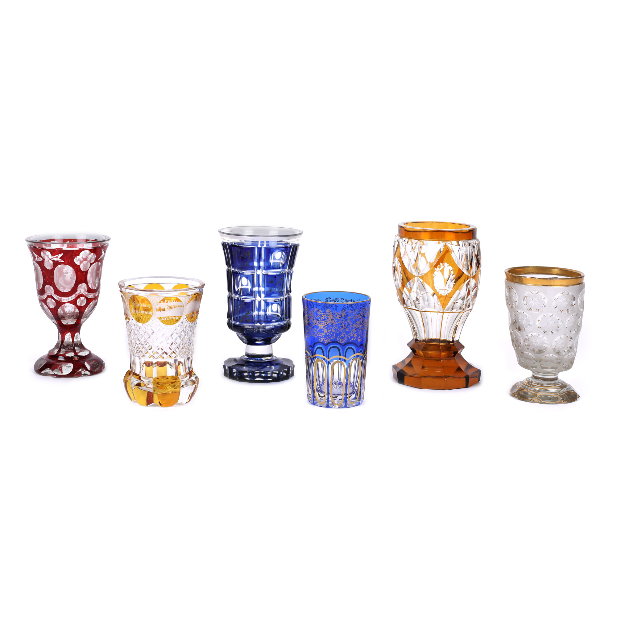 88. Lot format din șase pahare din cristal de Bohemia, cu decor divers, cca. 1900