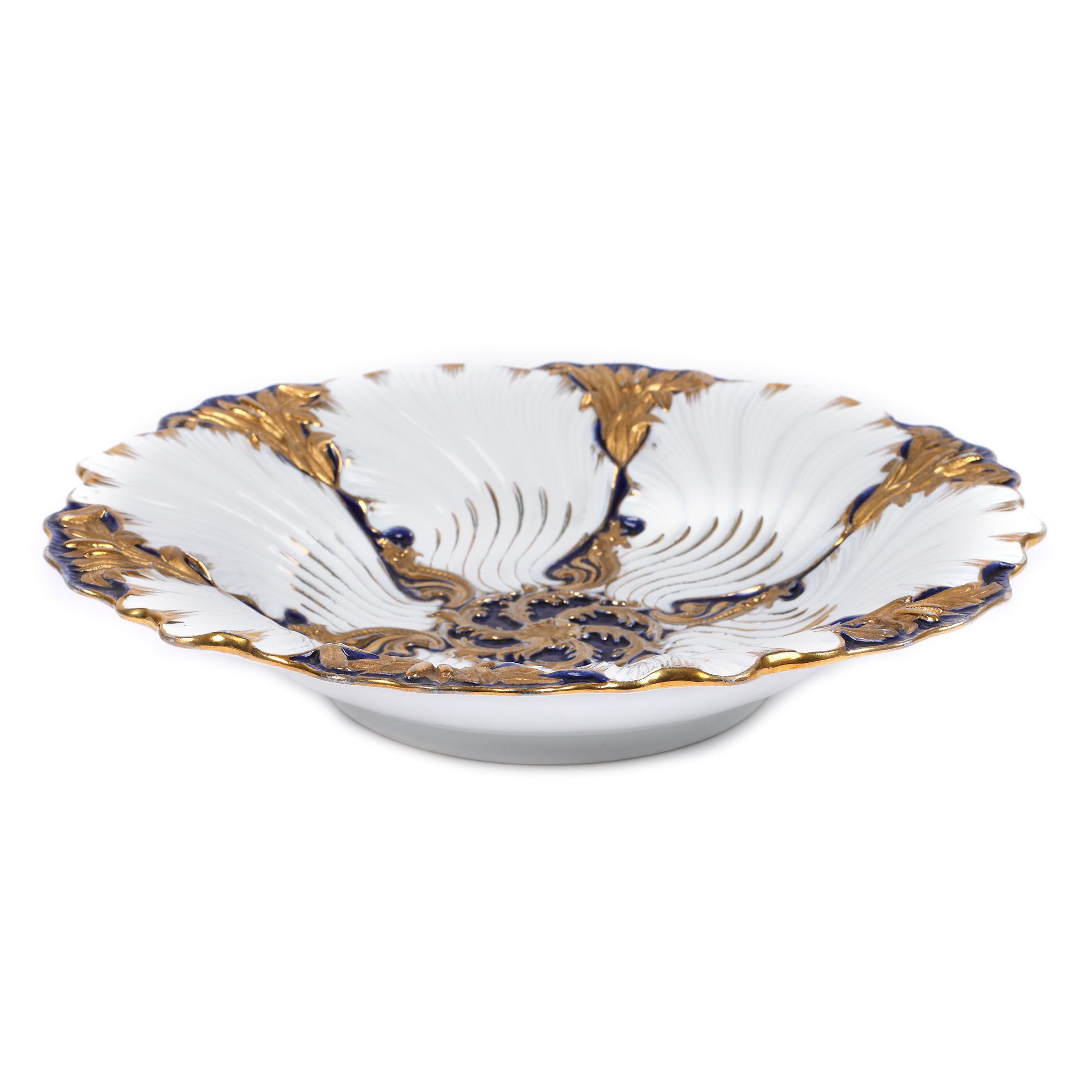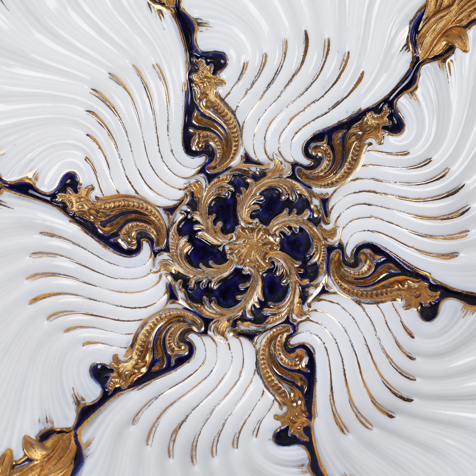 91. Pereche de platouri Meissen din porțelan, decorată cu frunze aurite, cca. 1920-1930