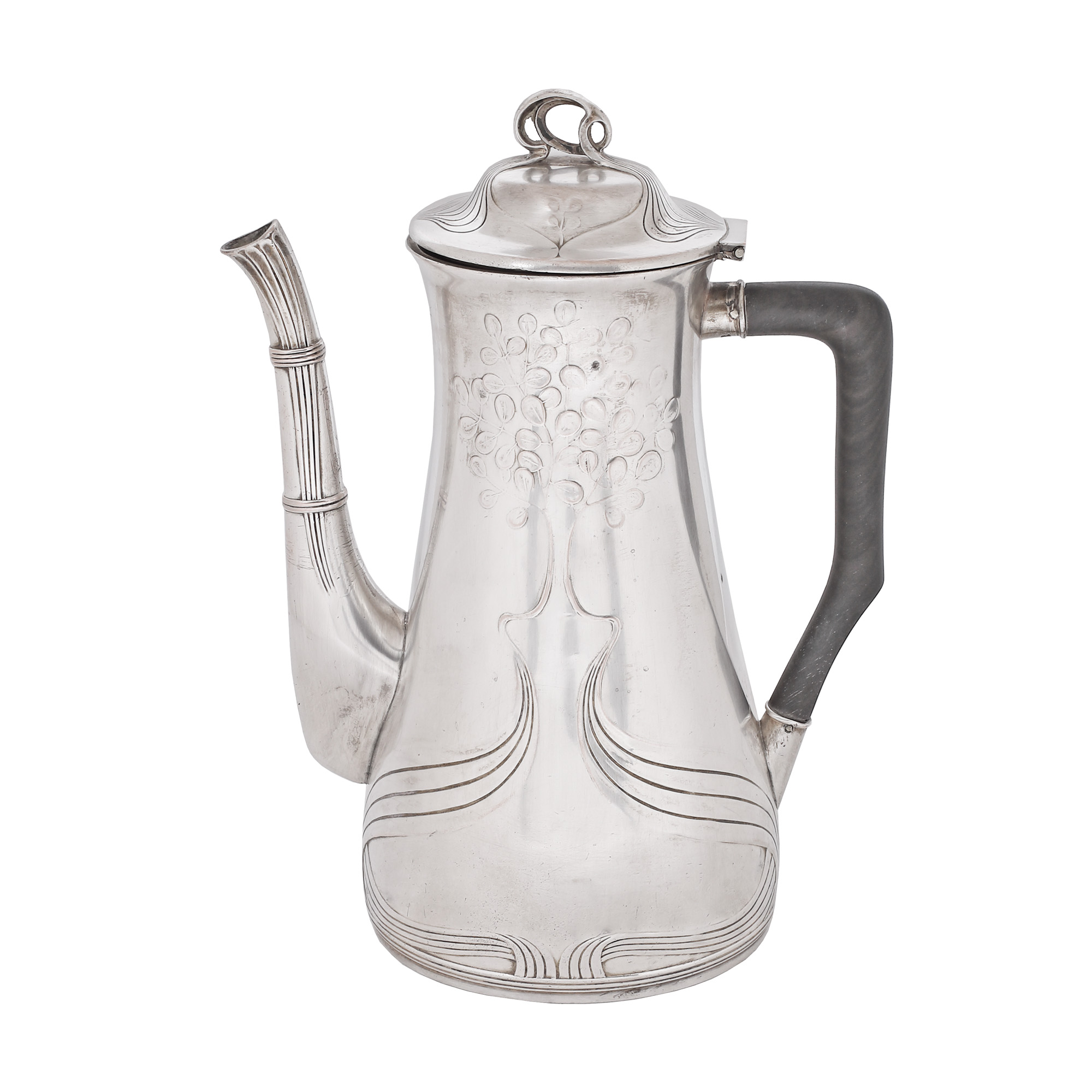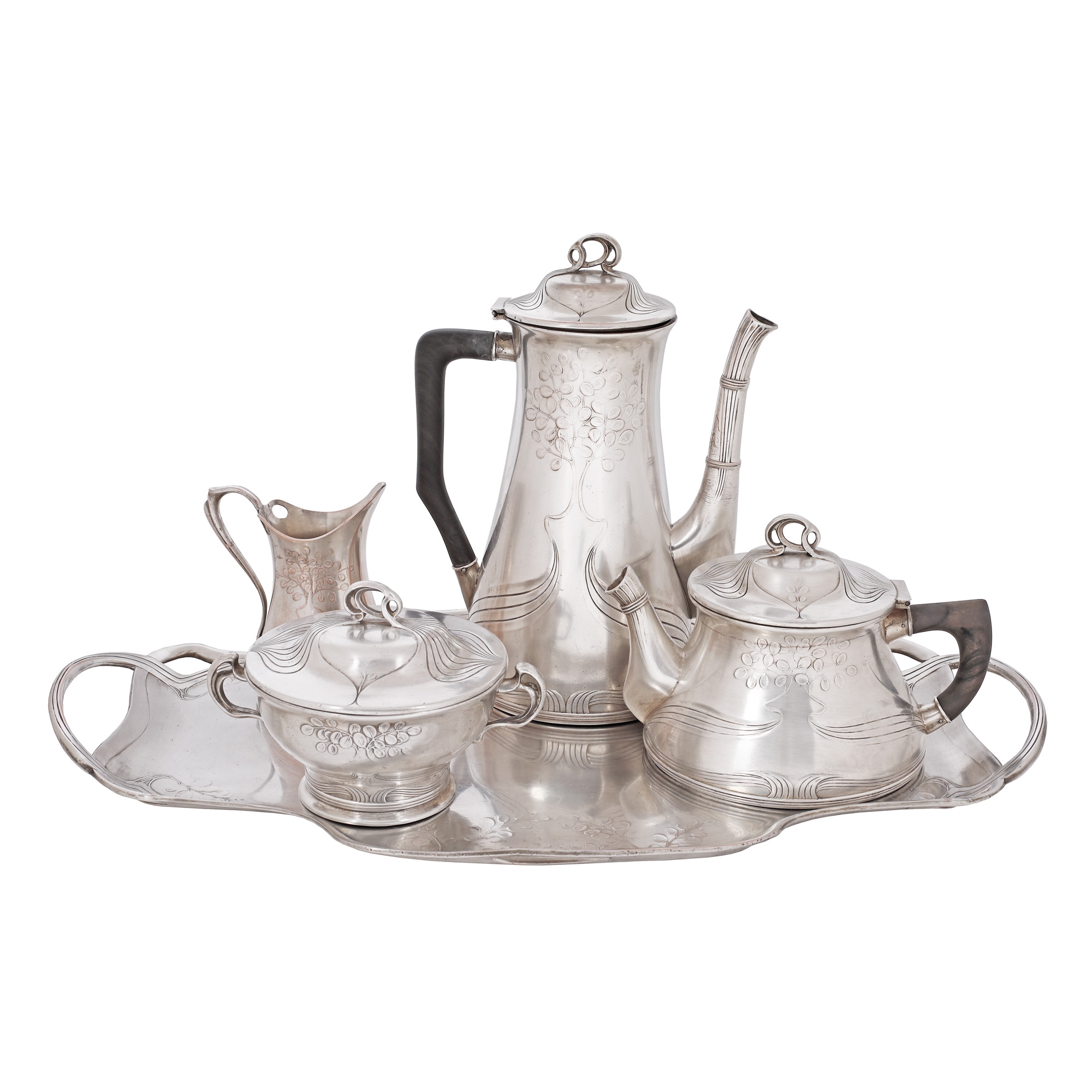 81. Set de ceai Orivit, în stil Secession, format din ceainic, cafetieră, zaharniță, letieră, tavă, cca. 1905