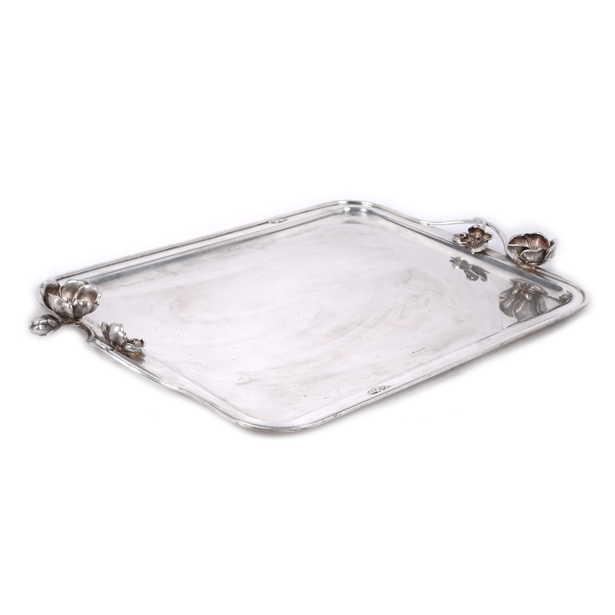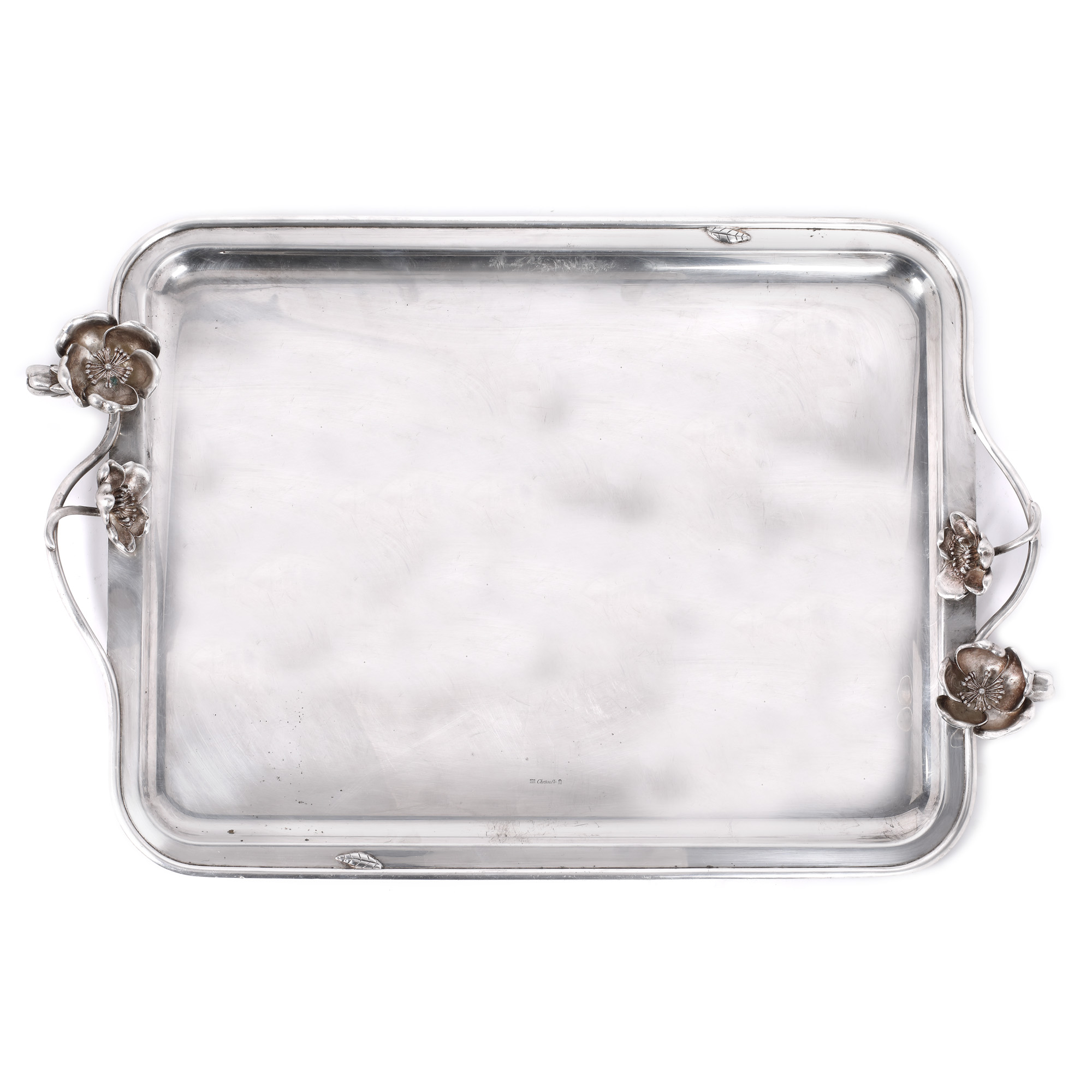 66. Tavă Christofle de inspirație Art Nouveau, decorată cu anemone după Emile Galle [Sec. XXI]