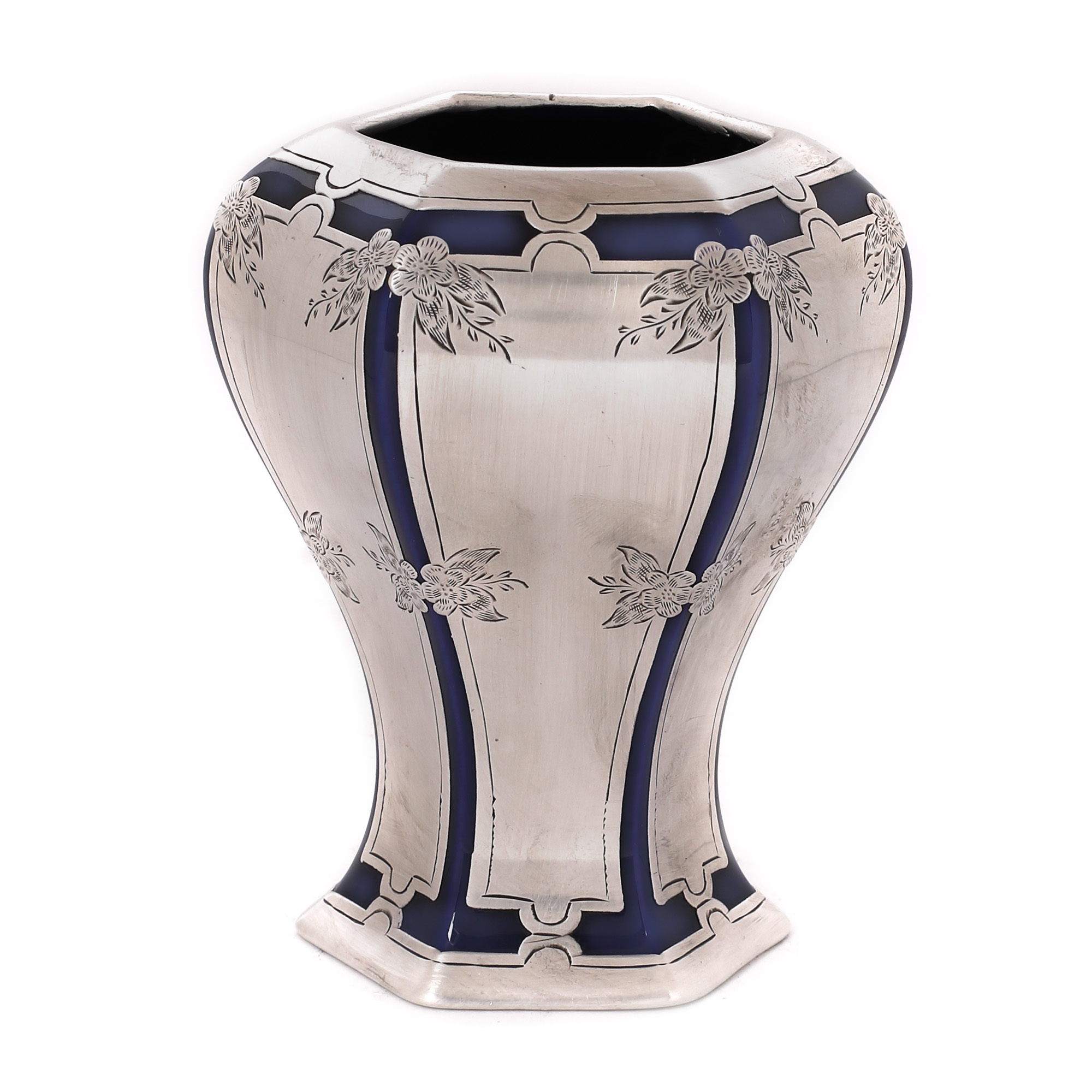 114. Vas din porțelan Lenox, cu montură din argint La Pierre, prima jumătate a sec. XX