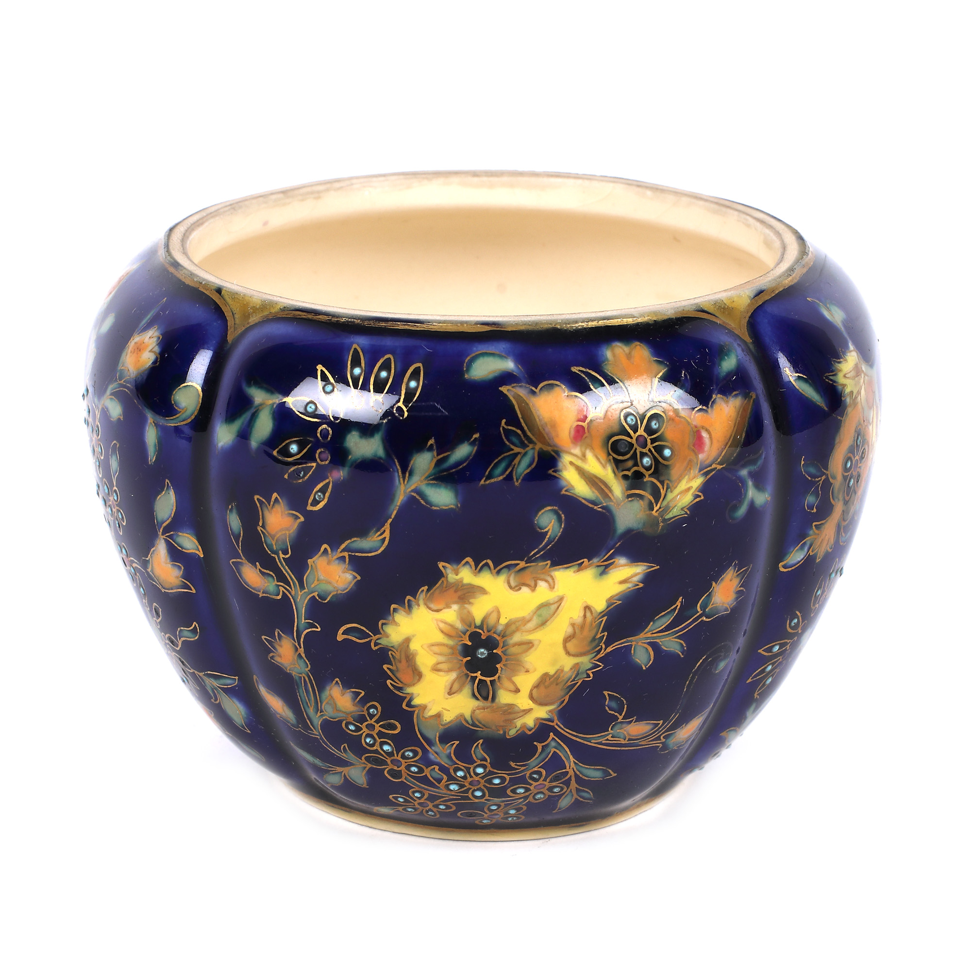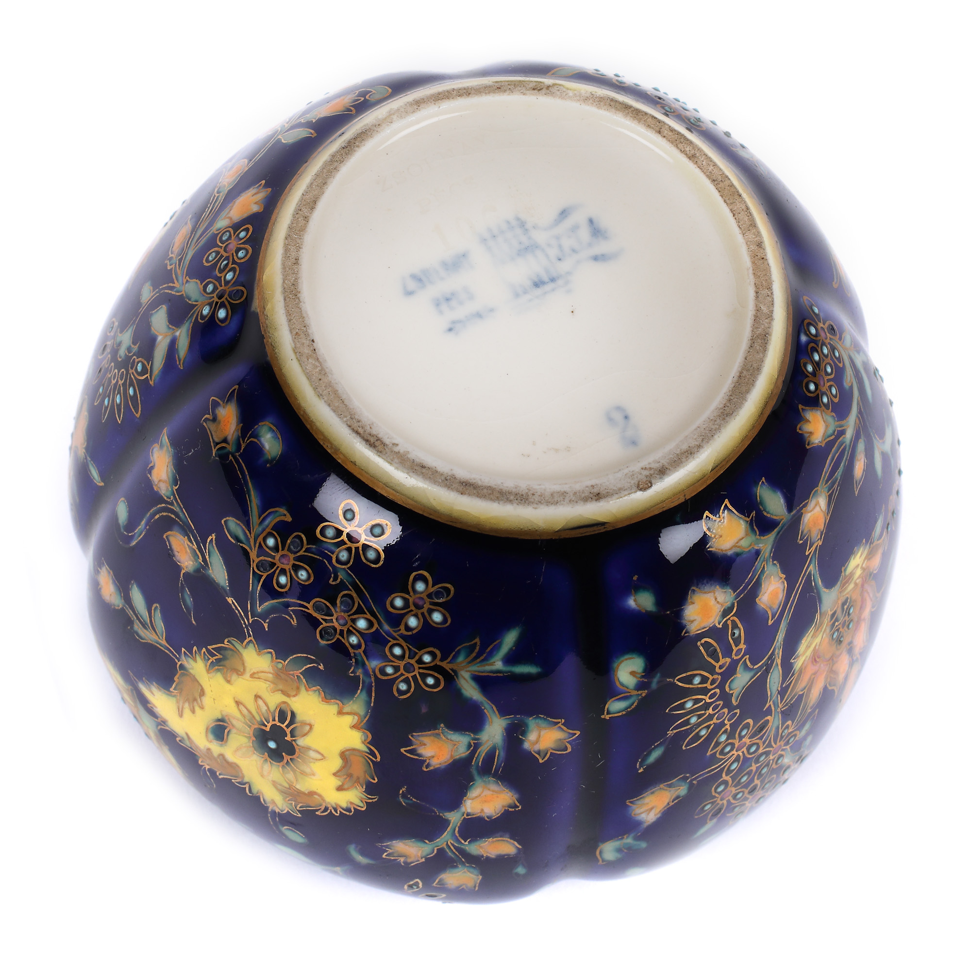 96. Vas Zsolnay din ceramică, cu decor floral realizat manual, cca. 1878-1879