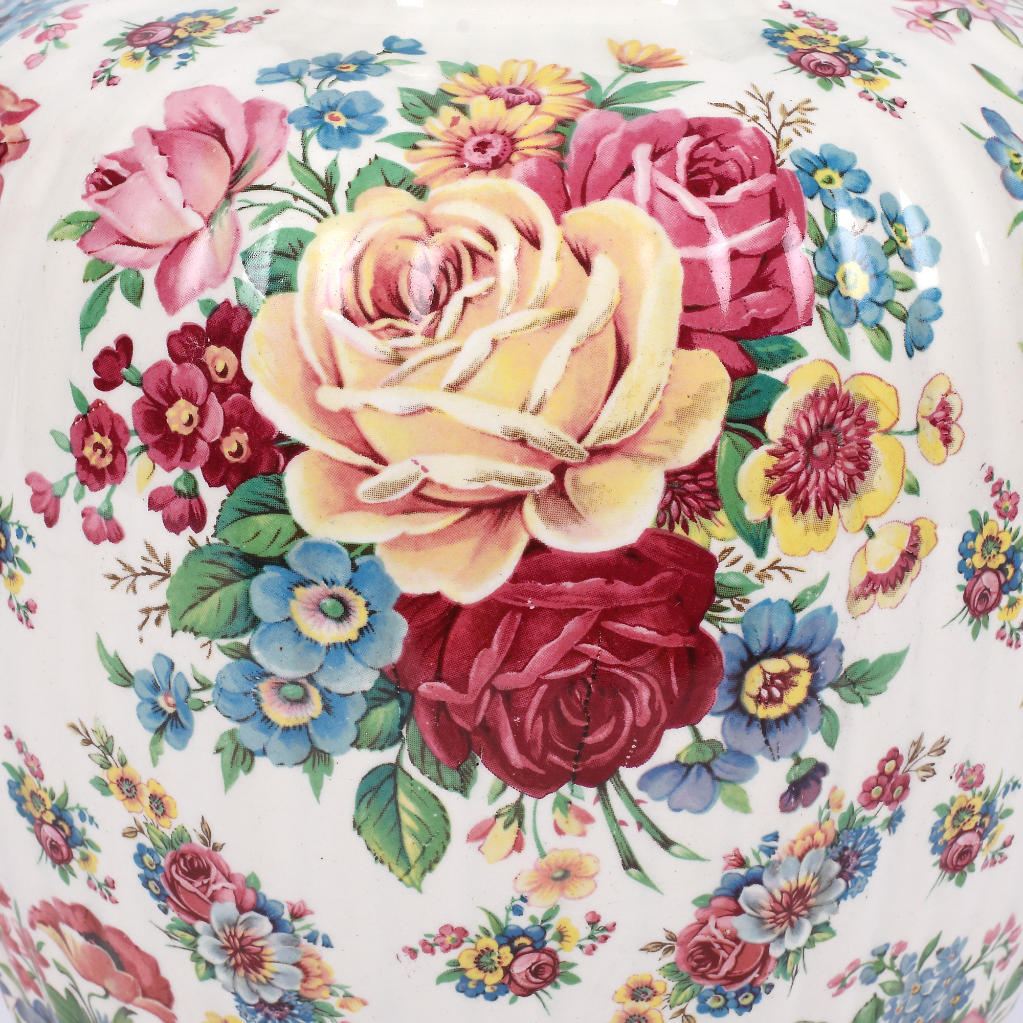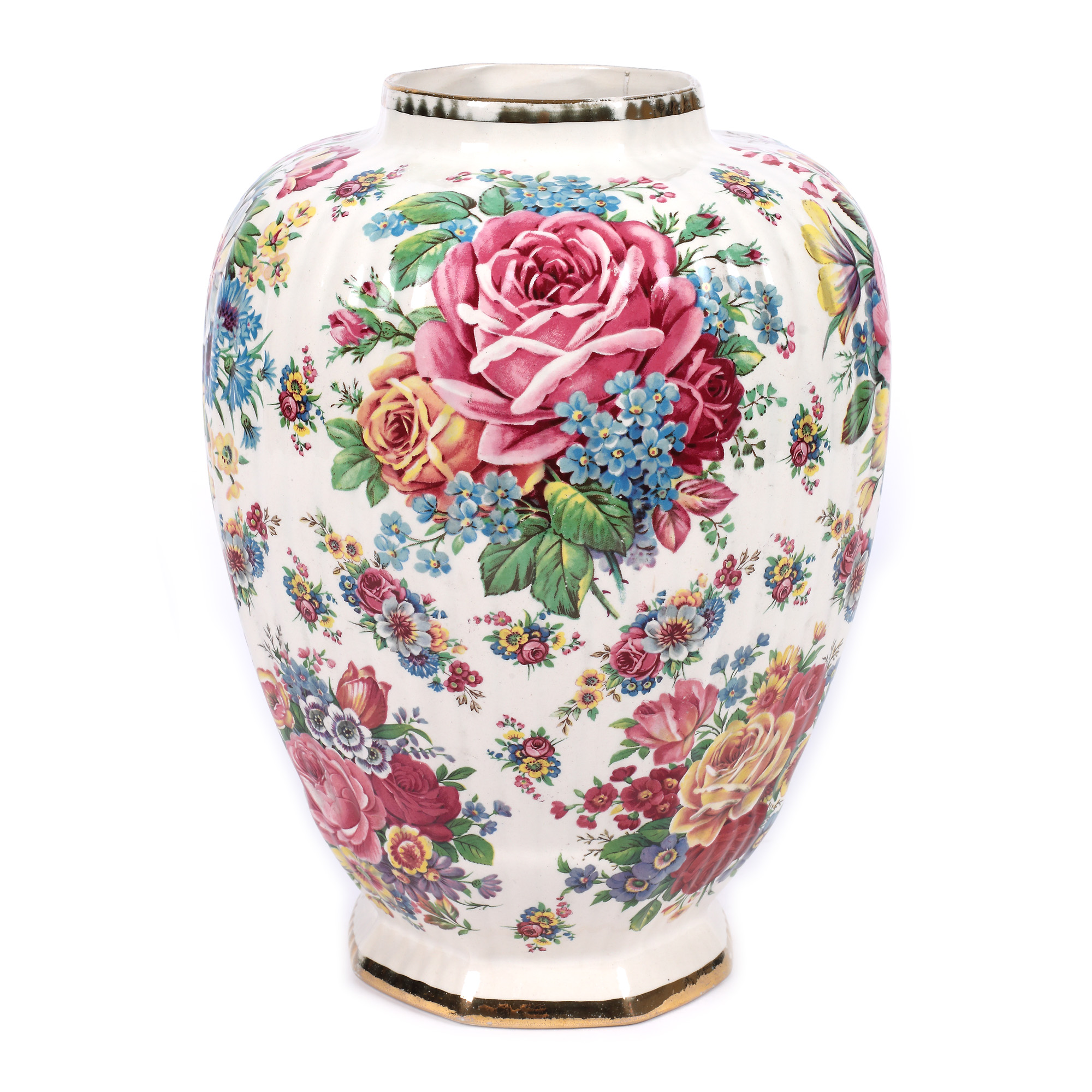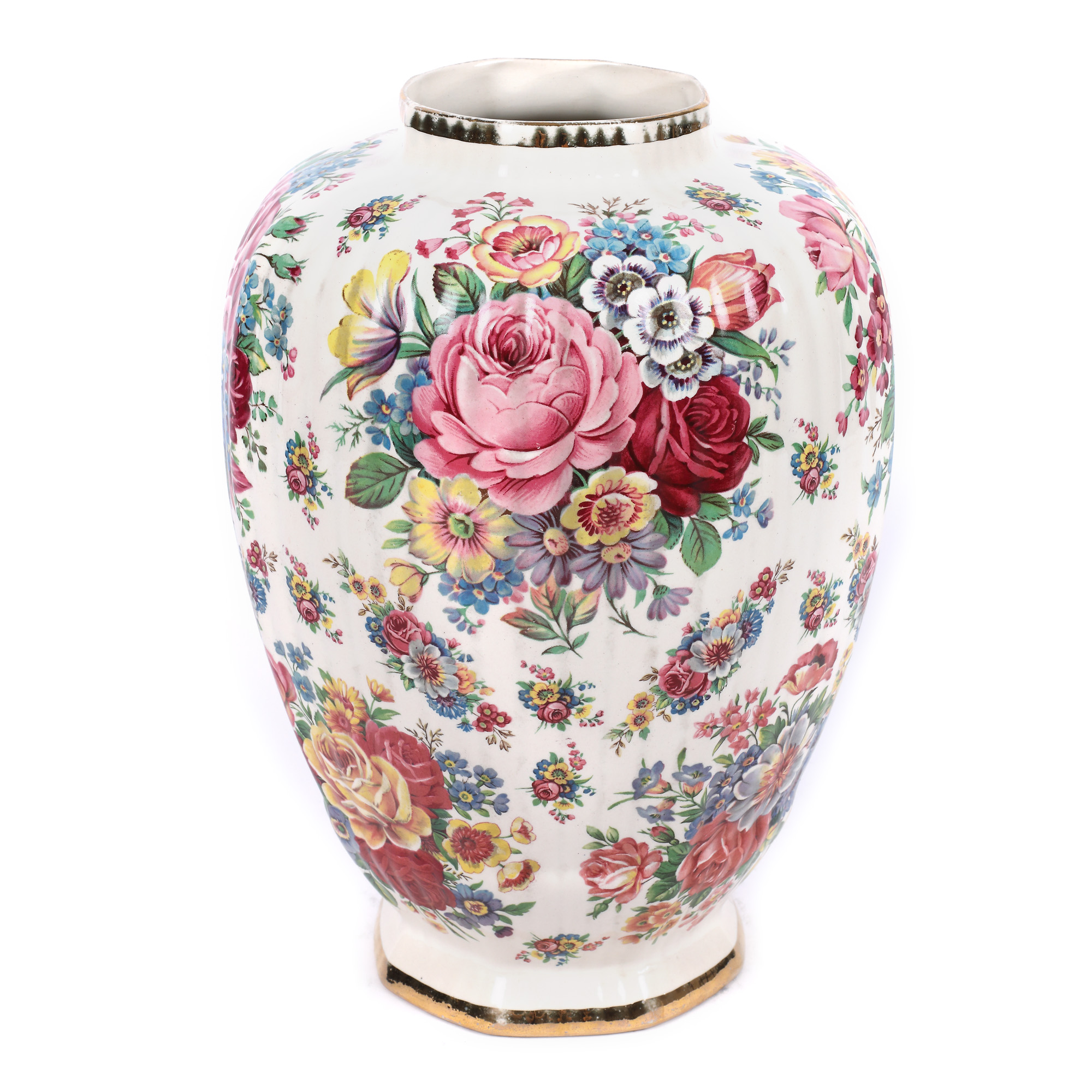 94. Vază Boch Frères Keralux din porțelan, cu bogat decor floral, cca. 1940-1950