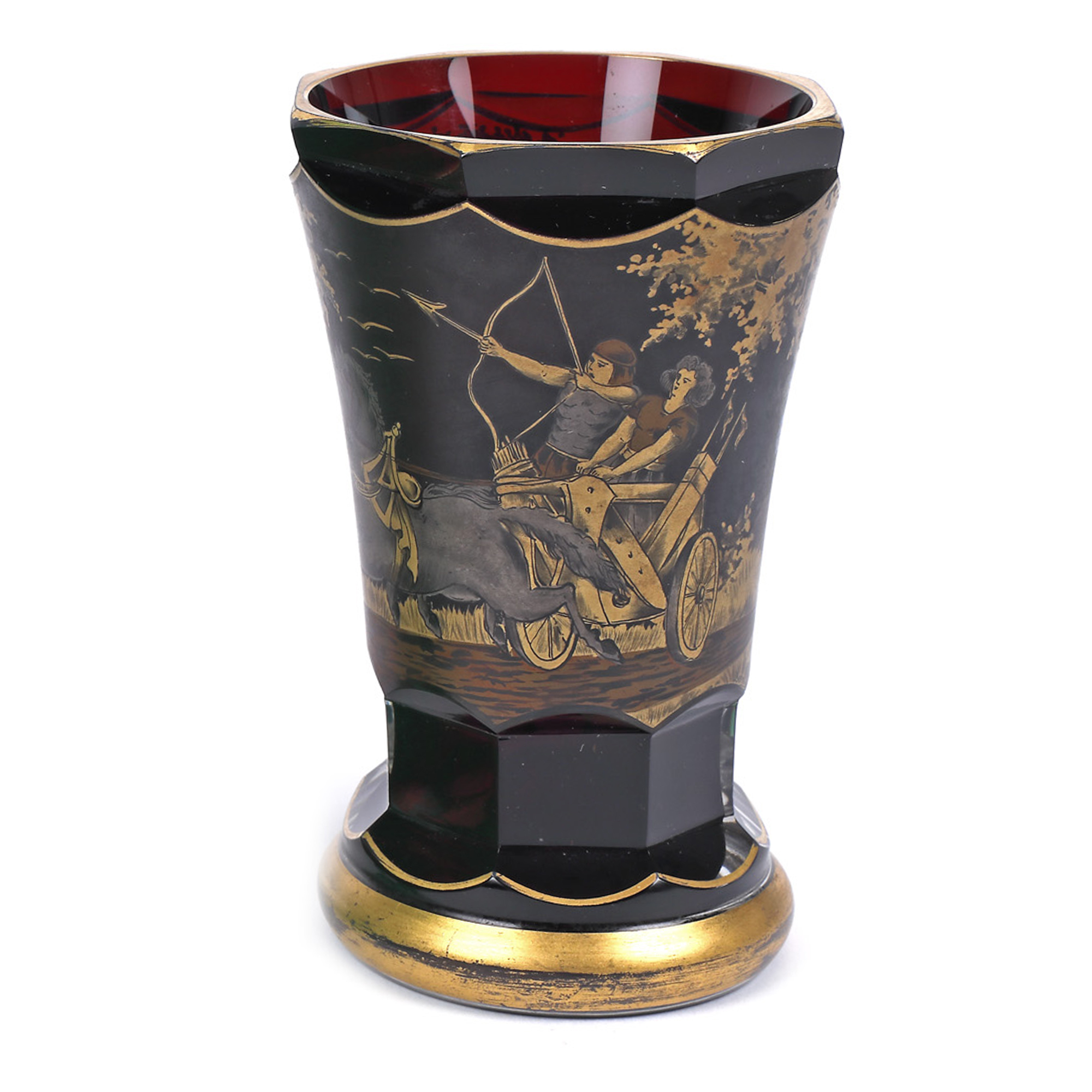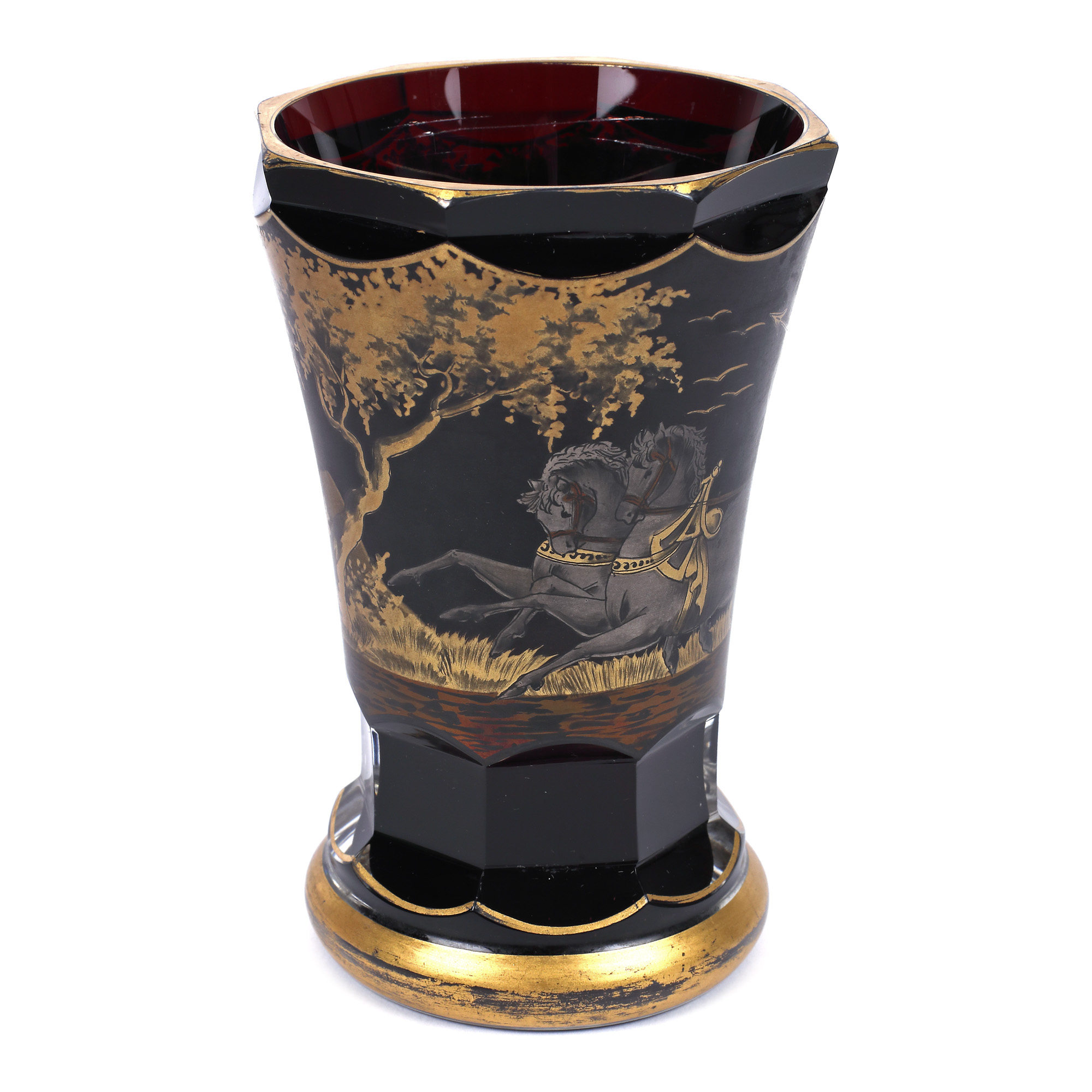 85. Vază din cristal de Bohemia, cu decor pictat, semnat Wolfgang Berndt, cca. 1900