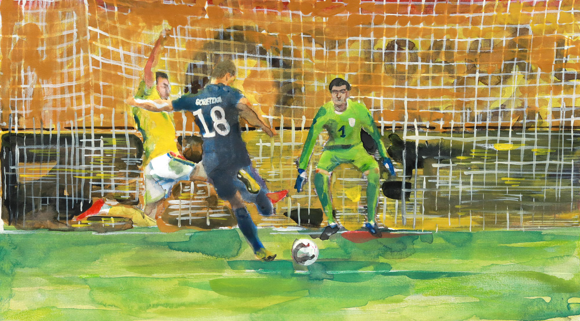 1. Lot format din tricou model EURO 2024, de joc, al meciului România - Ucraina, titular Florin Niță (1), semnat autograf, și acuarelă reprezentându-l pe sportiv, realizată de Ana-Ilinca Ciucu (n. 2005, București)