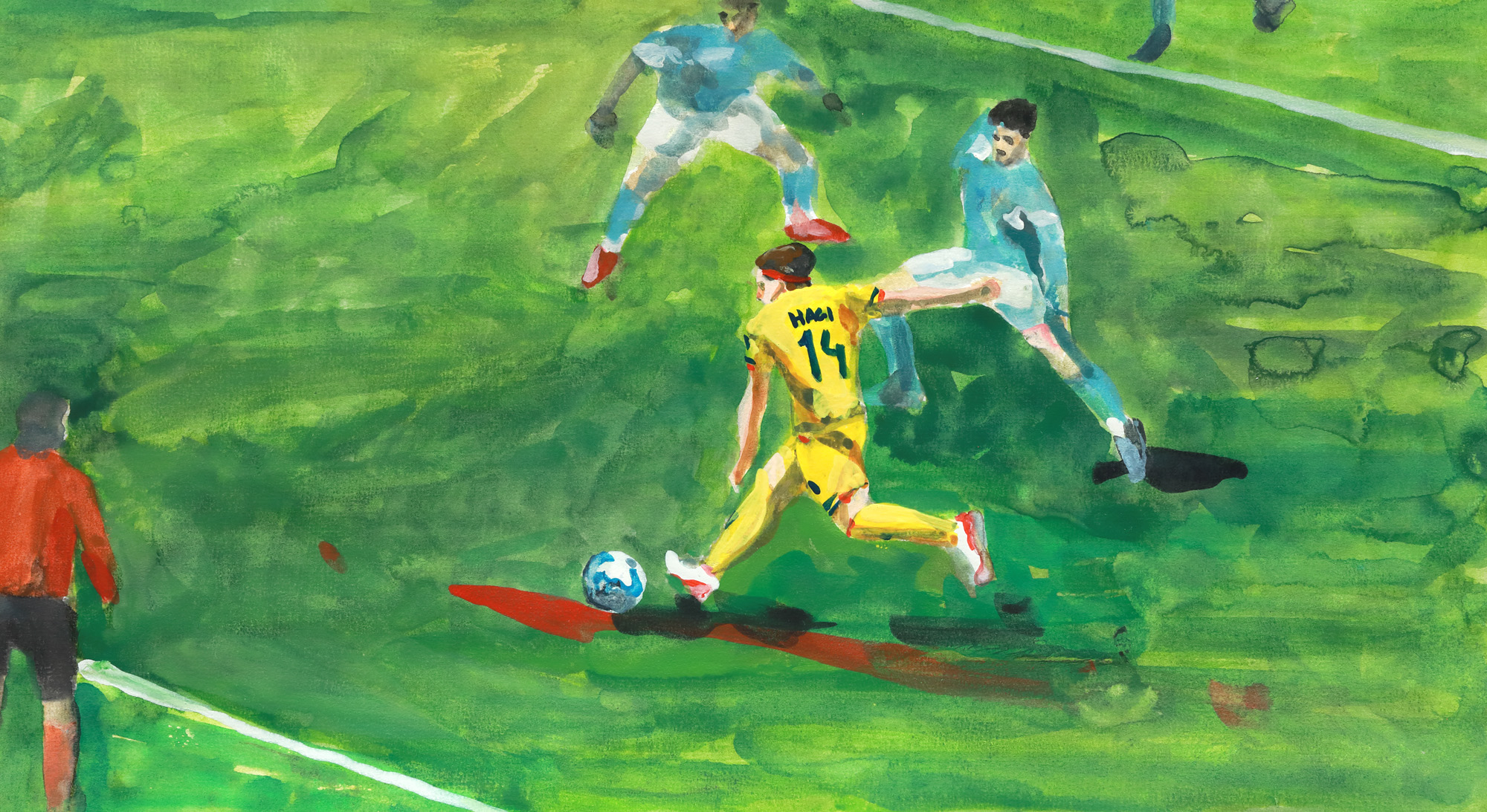 10. Lot format din tricou model EURO 2024, de joc, al meciului România - Ucraina, titular Ianis Hagi (10), semnat autograf, și acuarelă reprezentându-l pe sportiv, realizată de Thomas Apostu-Pojoni (n. 2007, București)