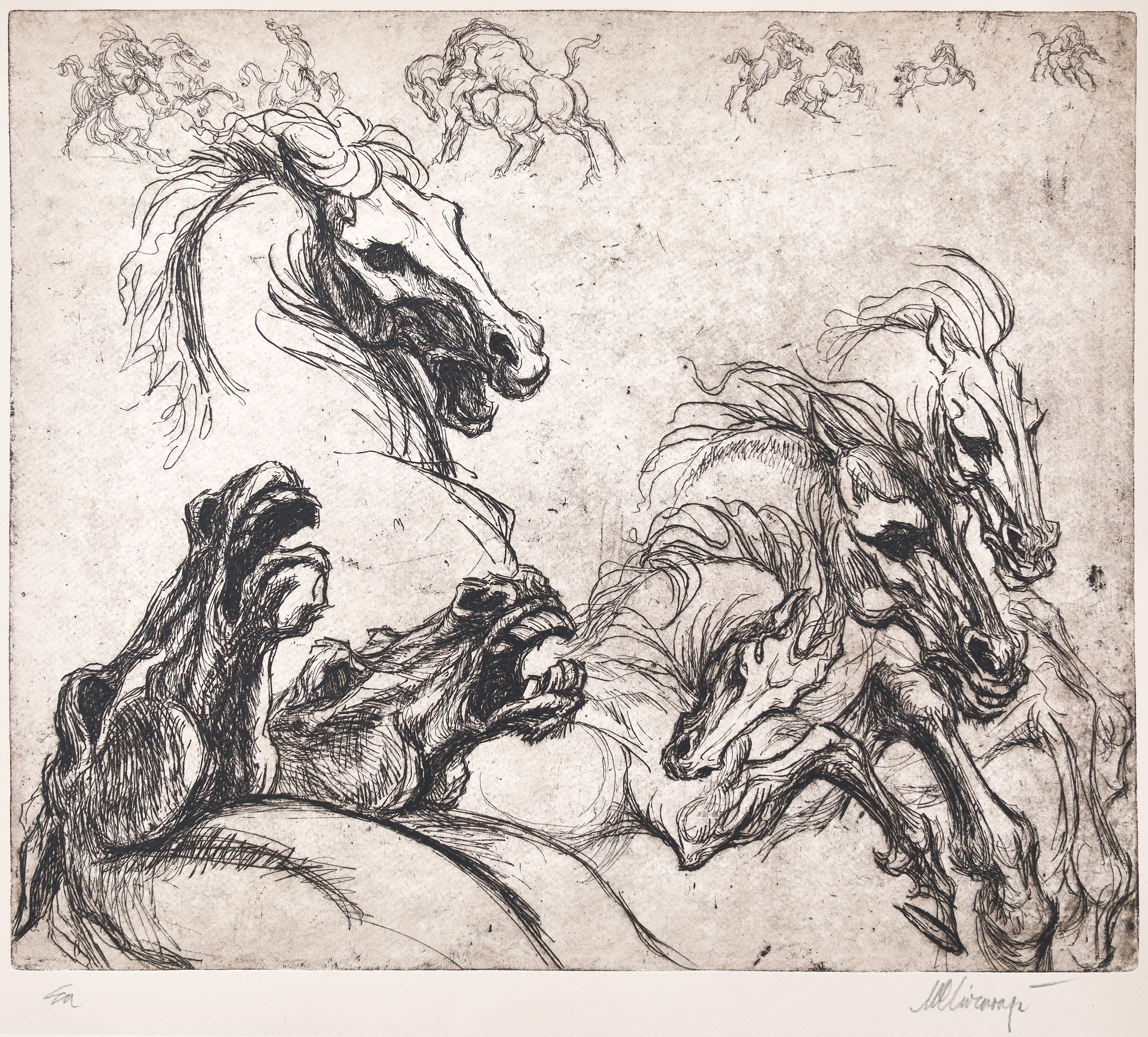 semnat dreapta jos sub cadru, în creion, ”M. Chirnoagă”; notat stânga jos, ”ea”