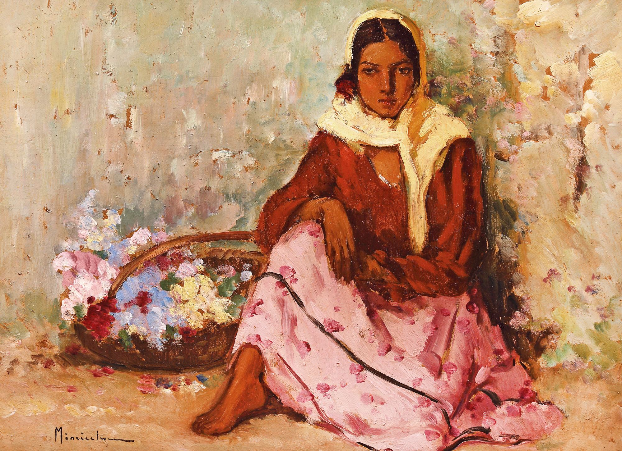 semnat stânga jos, cu brun, ”Mănciulescu”