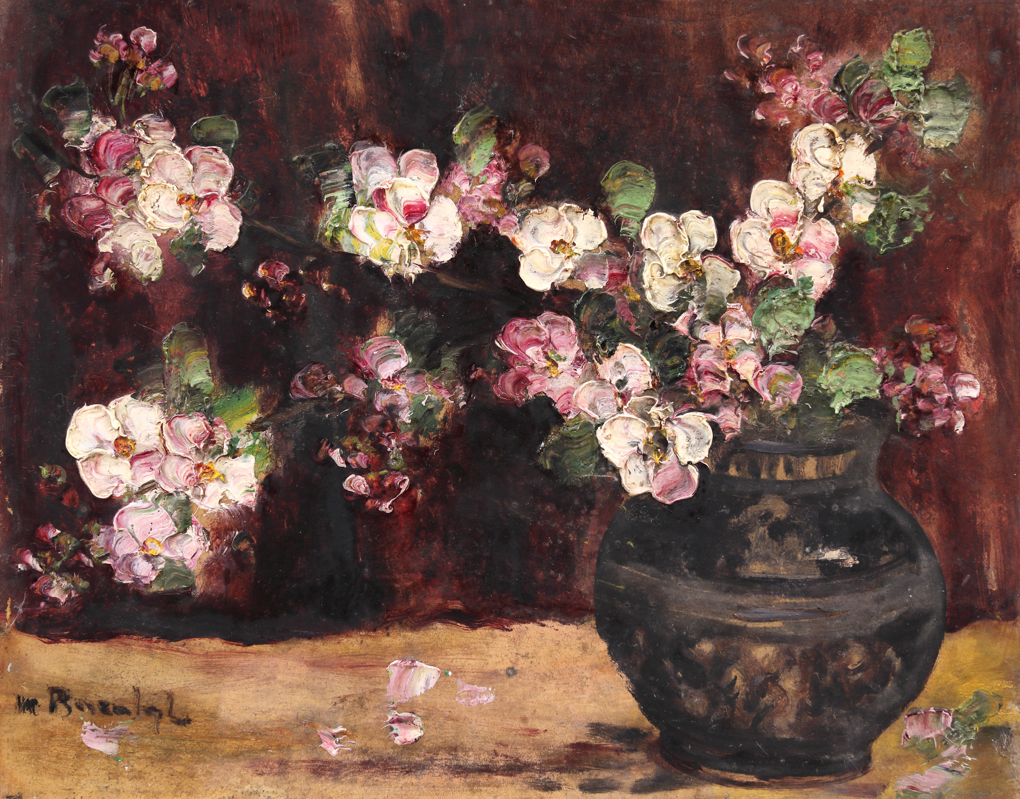 semnat stânga jos, cu brun, ”M. Bacaloglu”