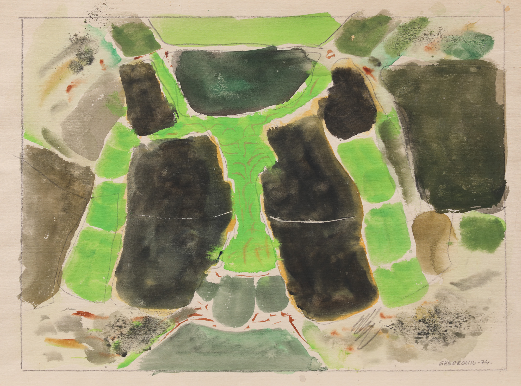 semnat și datat dreapta jos, în creion, ”GHEORGHIU, (19)74”