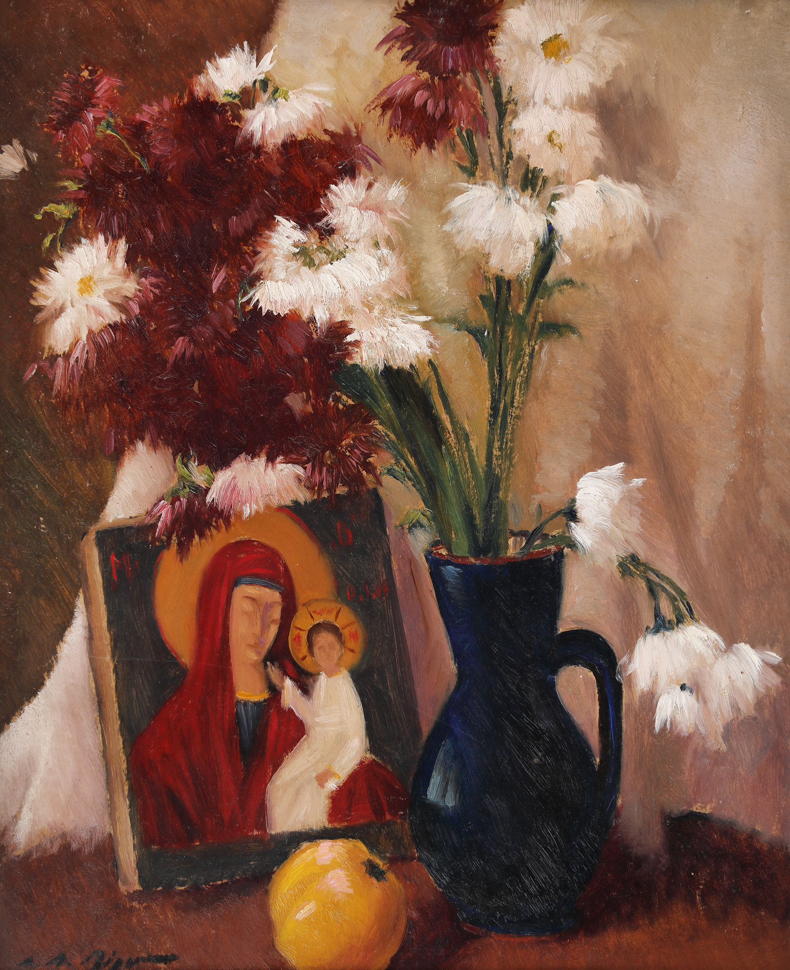 117. Natură statică cu icoană și ulcior cu crizanteme