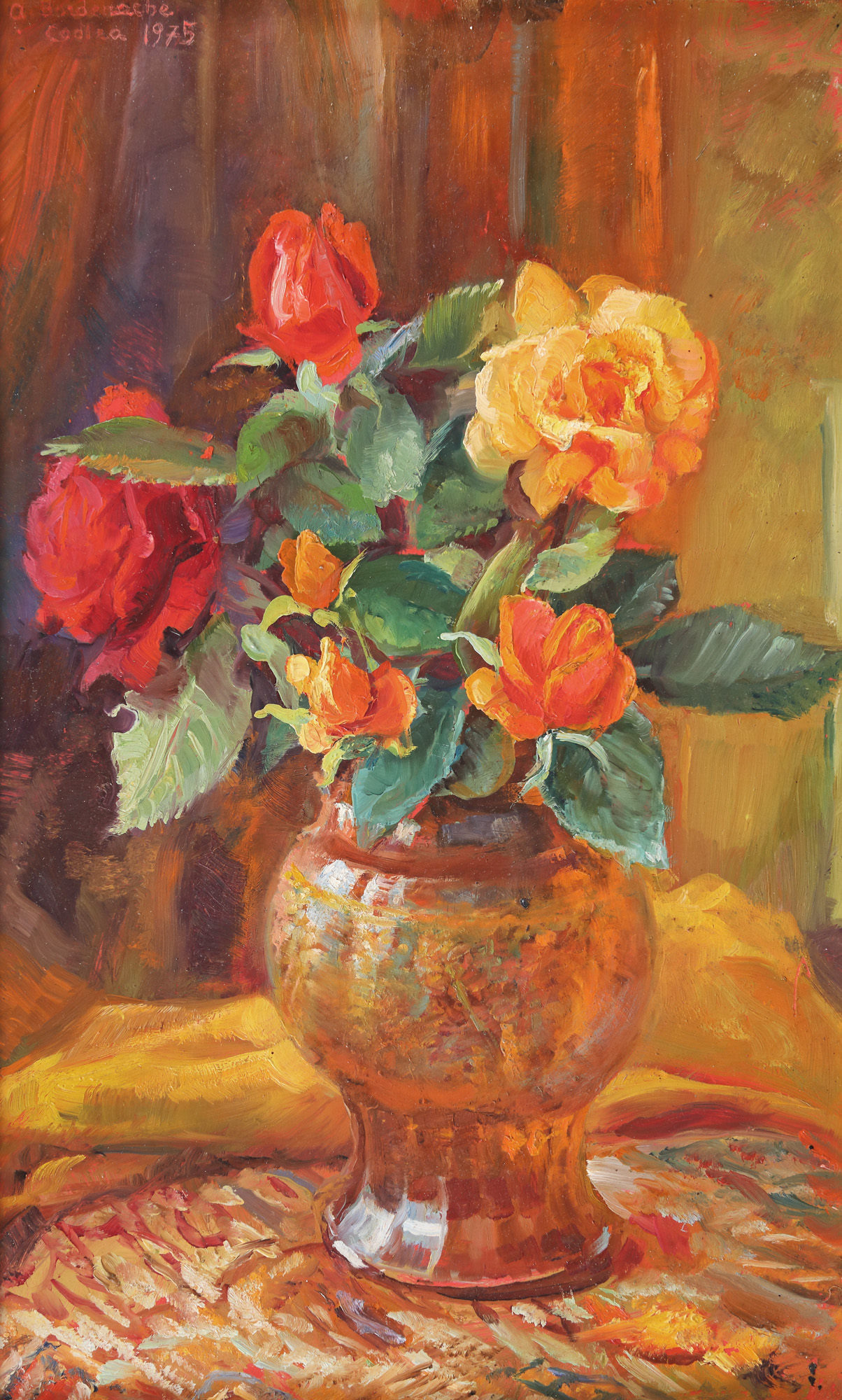 semnat, datat și localizat stânga sus, cu roșu "a.Bordenache, 1975, Codlea"