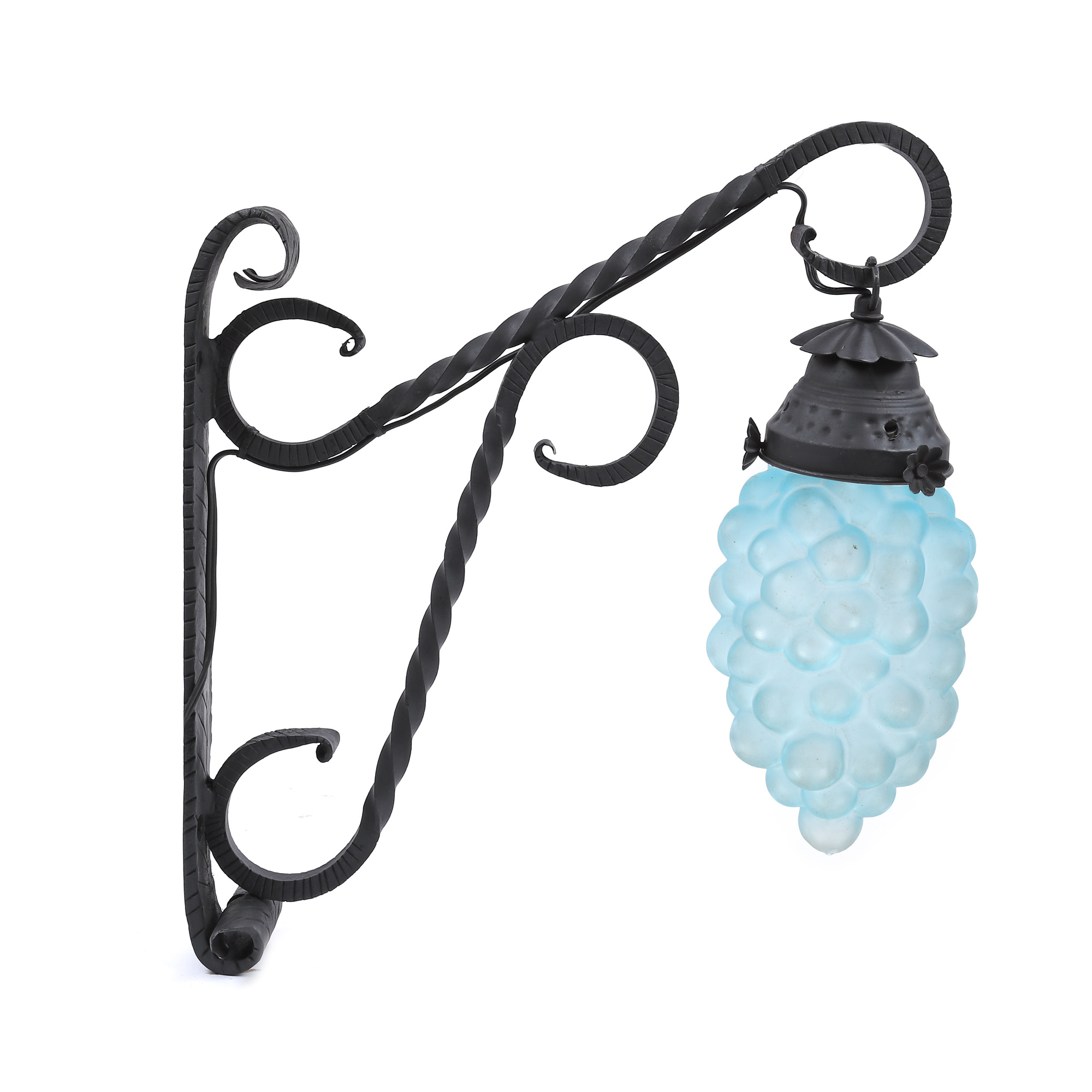 127. Aplică din fier forjat, cu abajur din sticlă sub forma unui ciorchine de strugure [A doua jumătate a sec. XX]