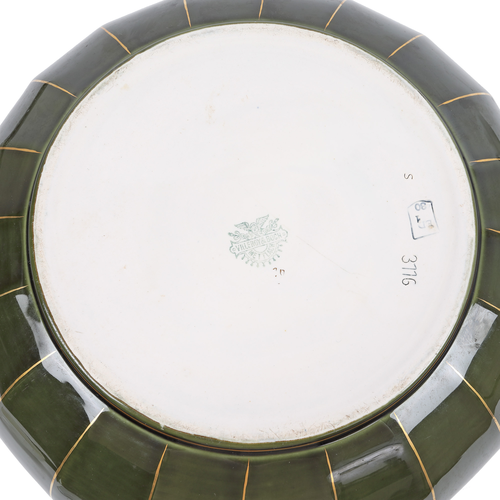 120. Cache-pot Jugendstil din porțelan Villeroy & Boch, decorat cu frunze, cca. 1874-1909