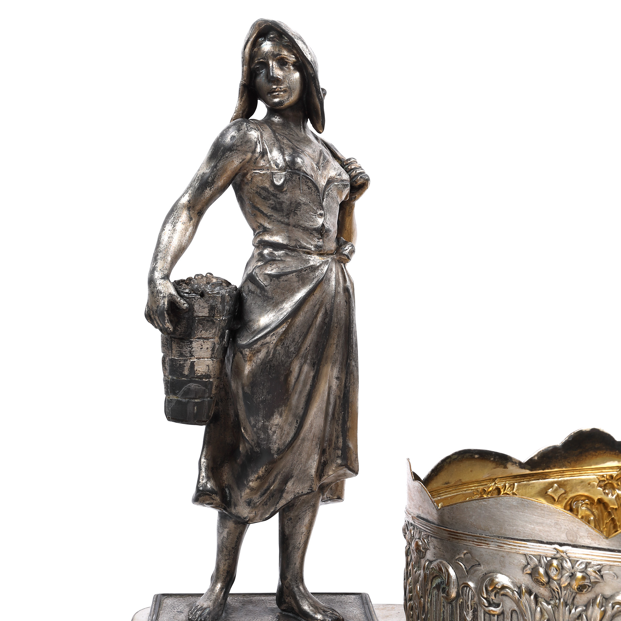 122. Jardinieră Lenk de inspirație Neoclasică, decorată cu motive vegetale și două statuete, cca. 1925-1945
