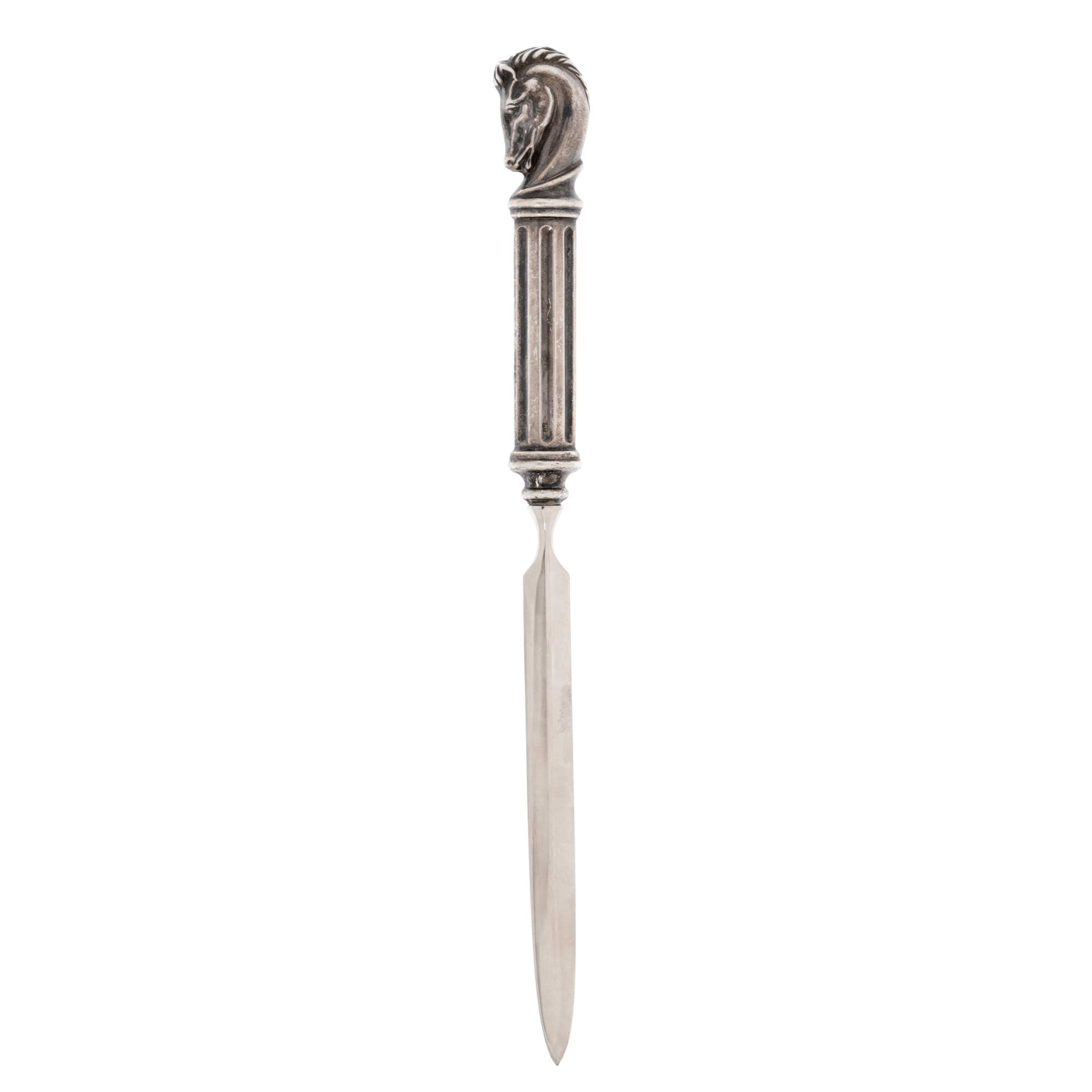 74. Coupe-papier din argint, decorat cu motive hipice [a doua jumătate a sec. XX]