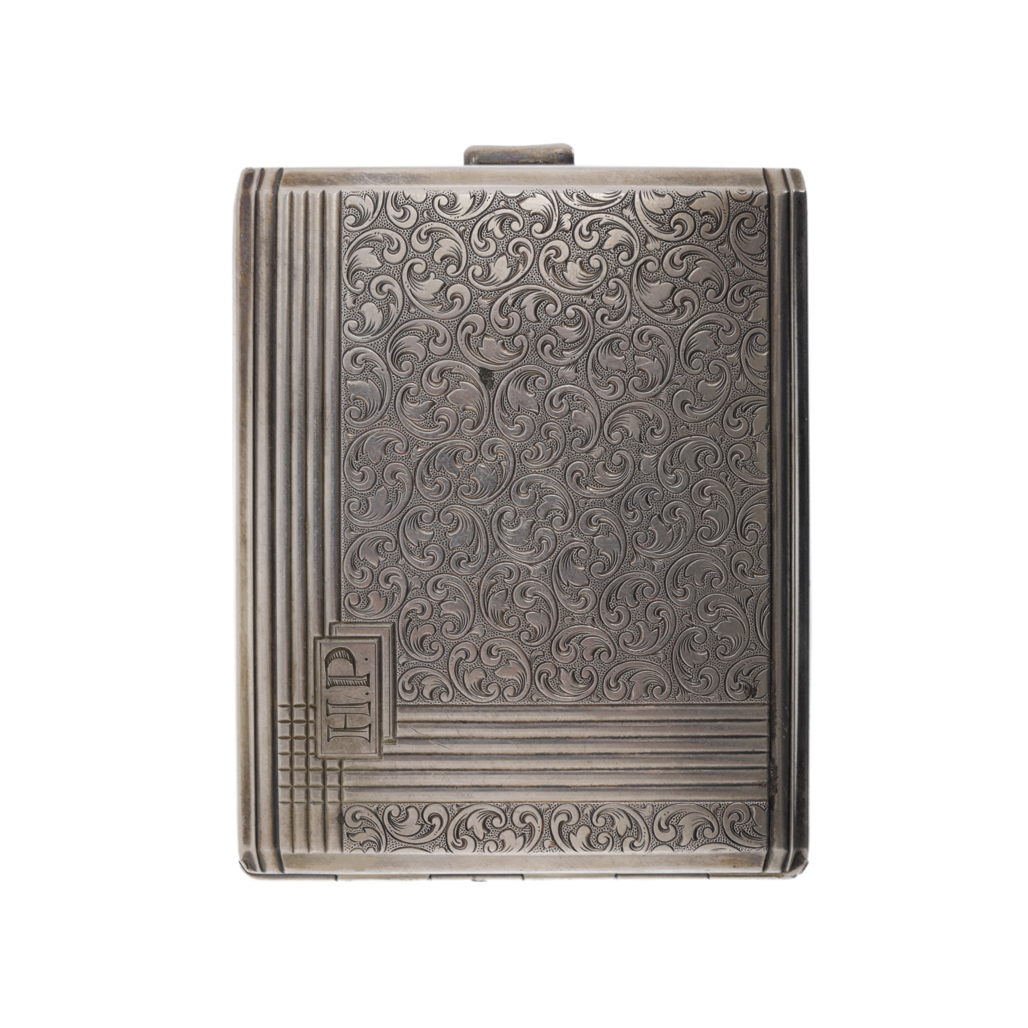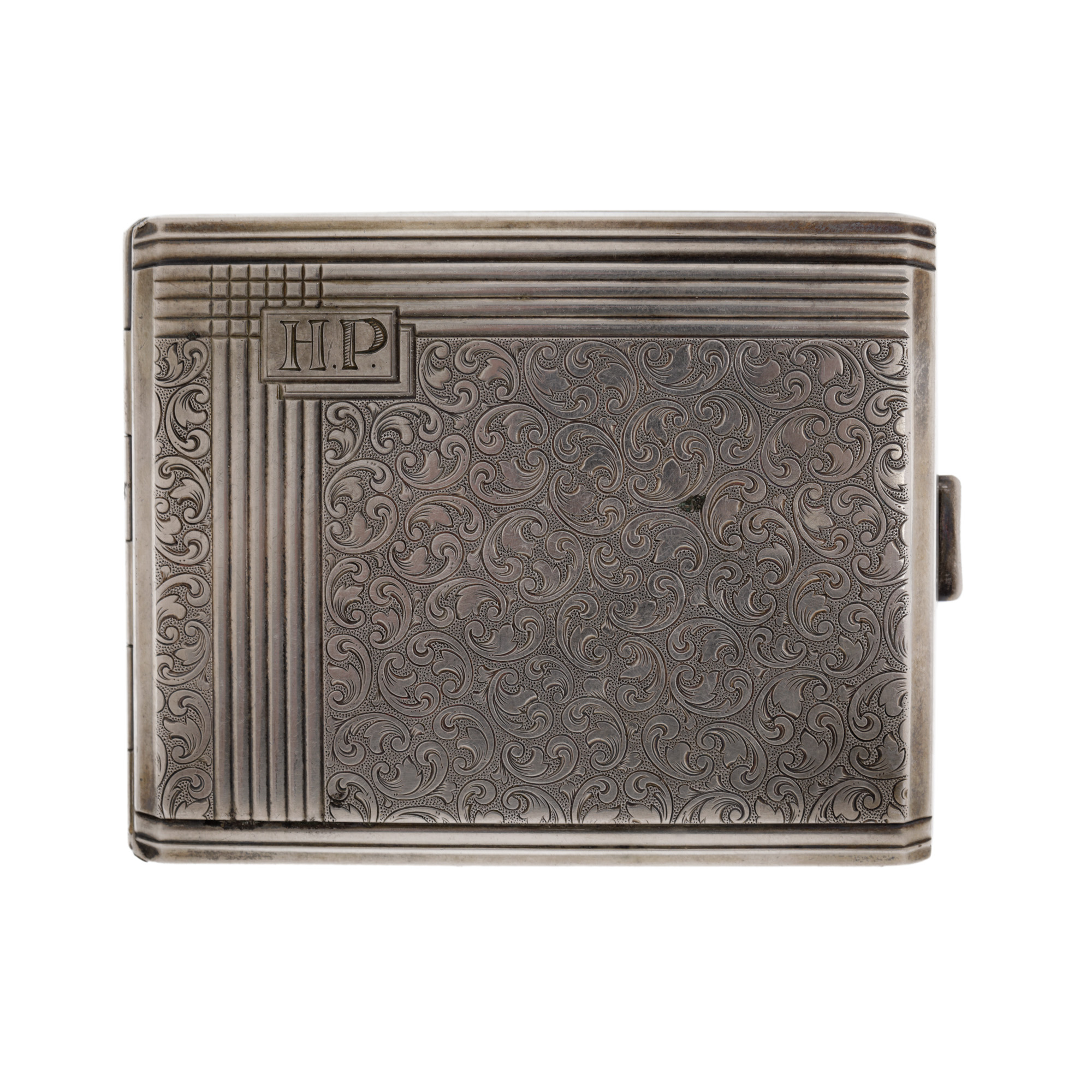 62. Tabacheră din argint, cu decor vegetal, cu monogramă HP [a doua jumătate a sec. XX]