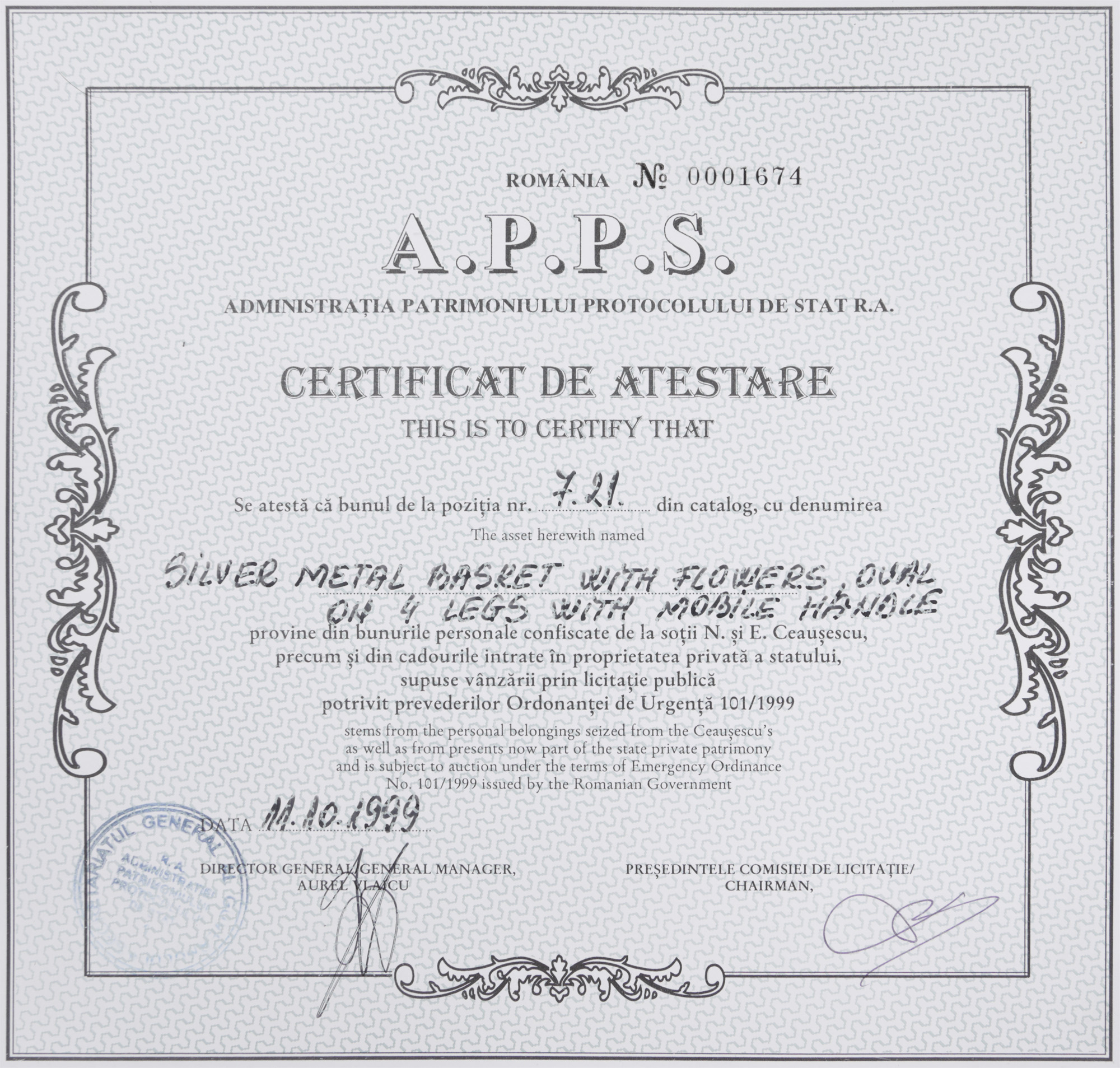 80. Vide-poche din argint, Austro-Ungaria, cca. 1850, a decorat Palatul Primăverii, însoțit de certificat R.A.A.P.P.S.
