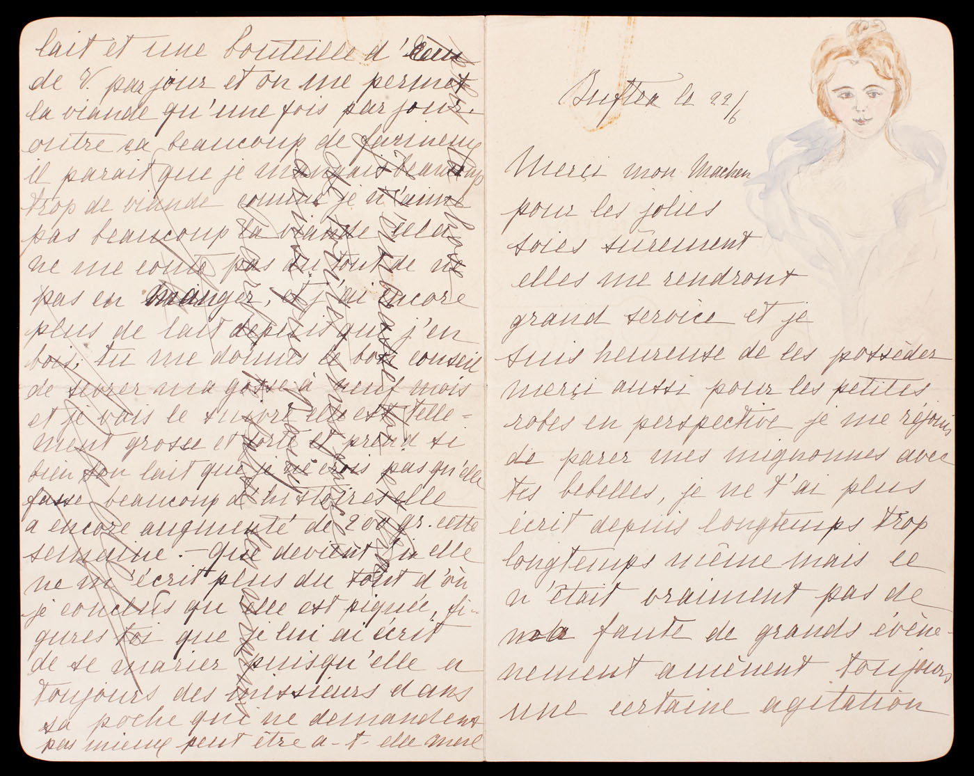 77. Excepțională scrisoare a prințesei poetese Nadeja Ştirbey, în care apar chestiuni familiale şi personale, decorată cu un desen acuarelat inedit al Nadejdei (2 file)