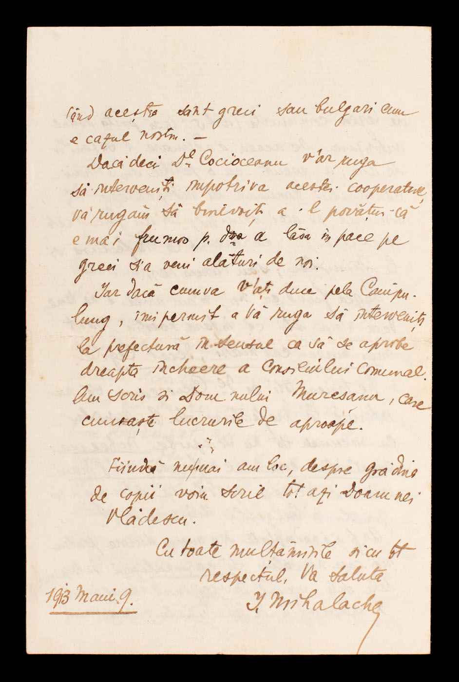 74. Lot format din două scrisori ale lui Ion Mihalache, din perioada premergătoare numirii acestuia ca Președinte al Asociației Naționale a Învățătorilor, 1913