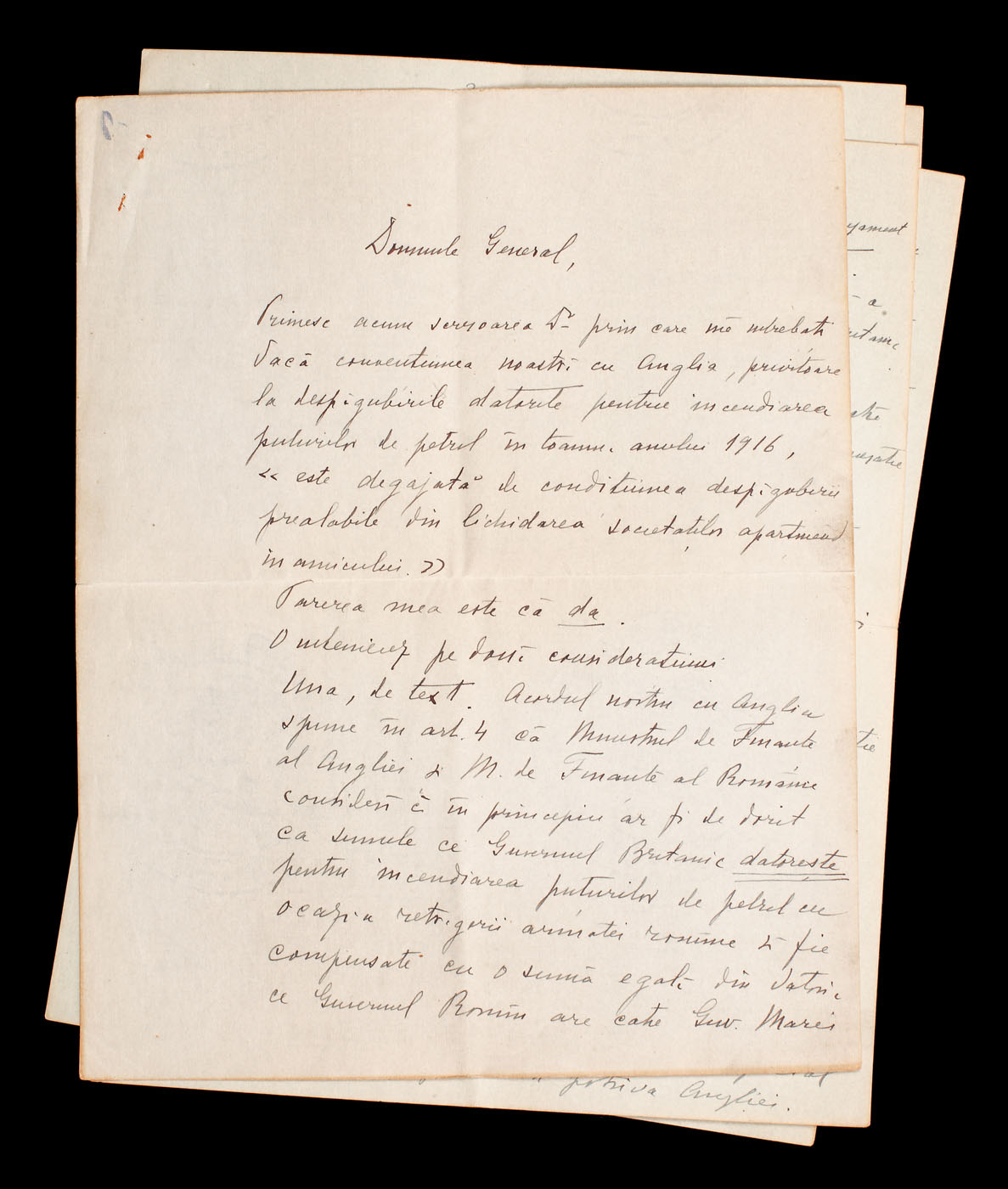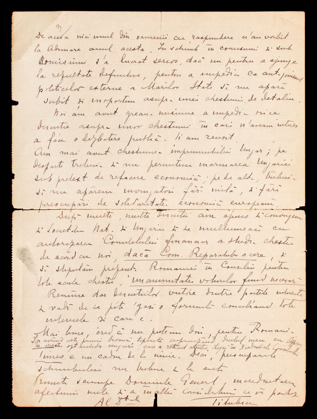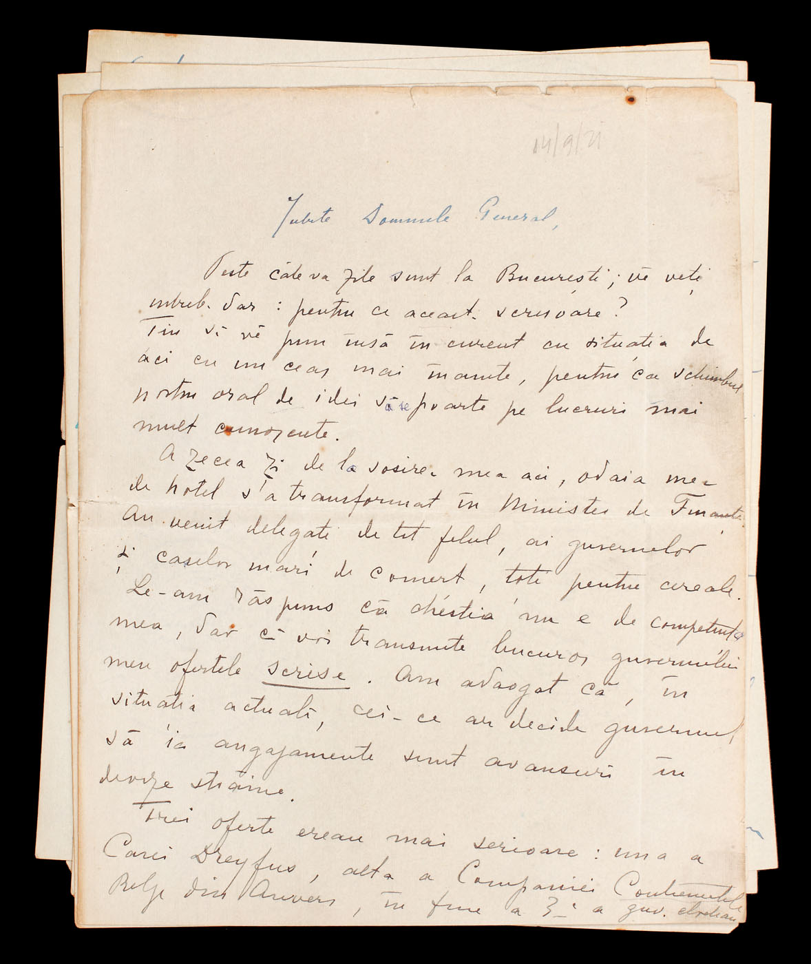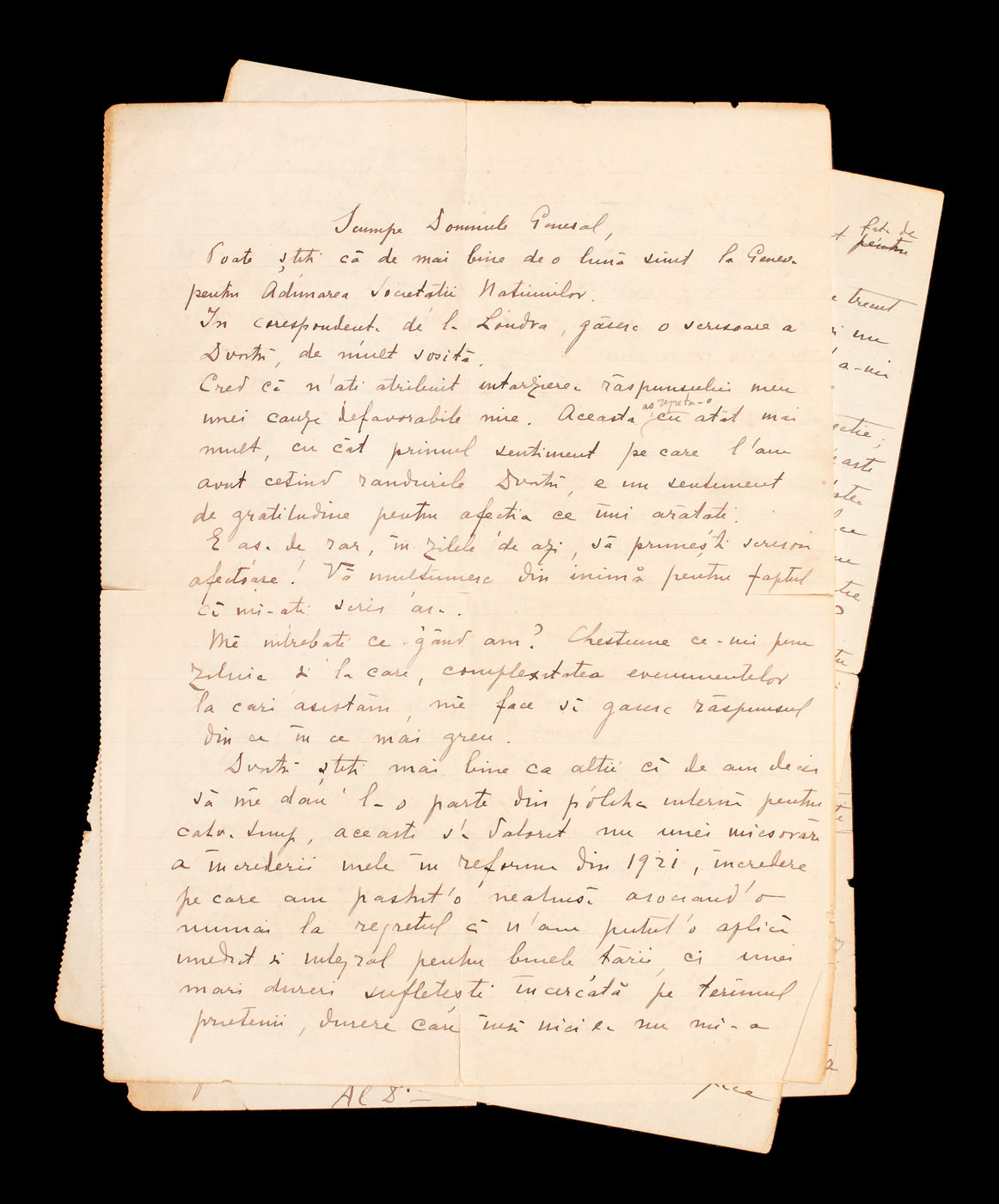 Una dintre scrisori are antetul Hotelului Miramare Continental Palace San Remo, 15 oct 1928, de curtoazie (două file).