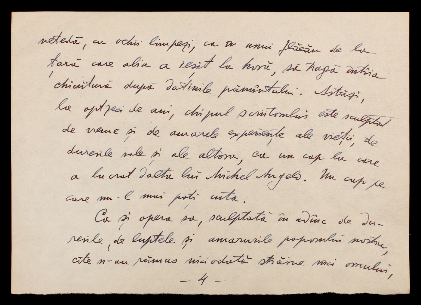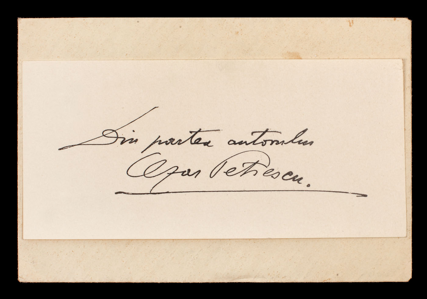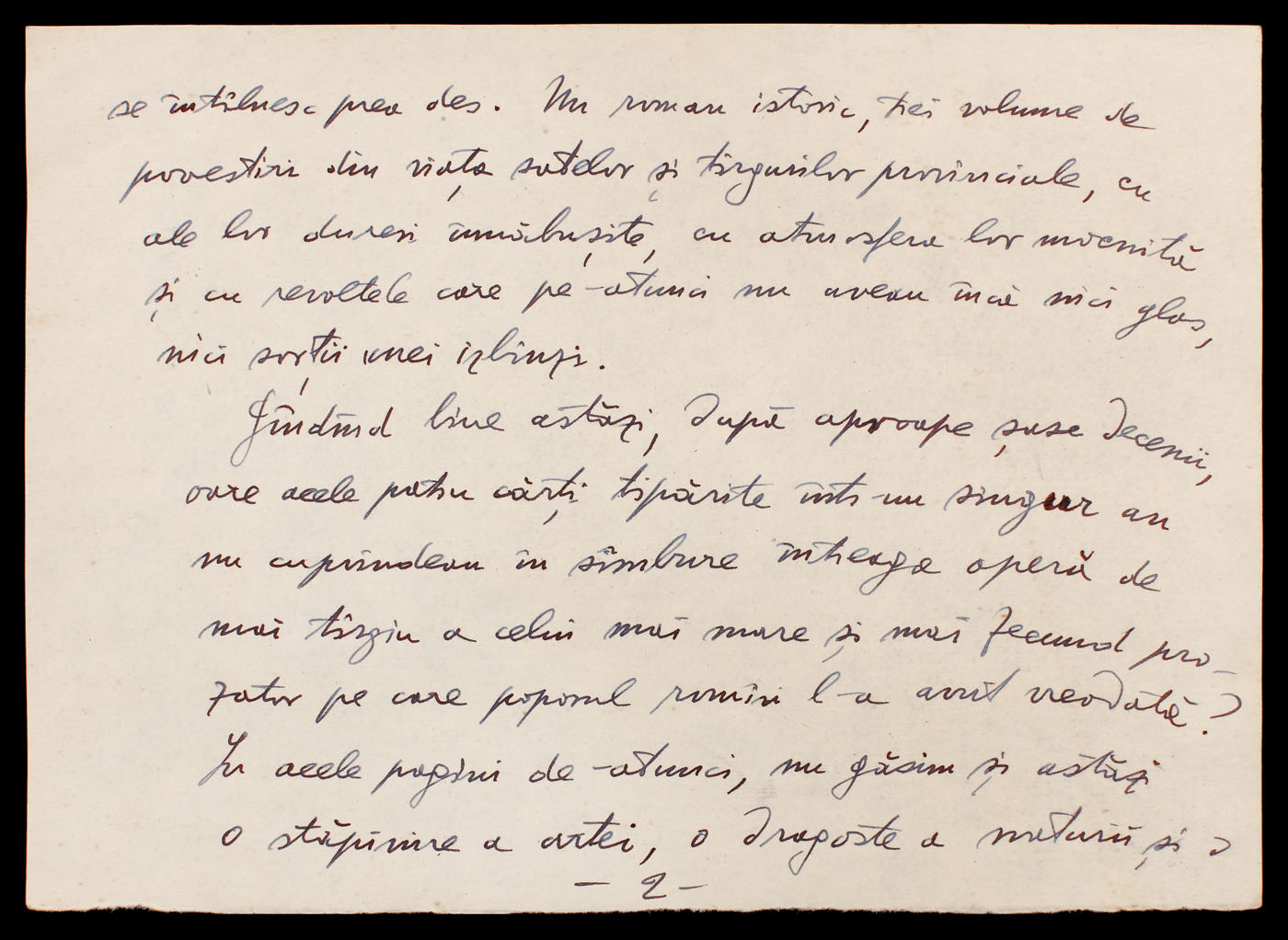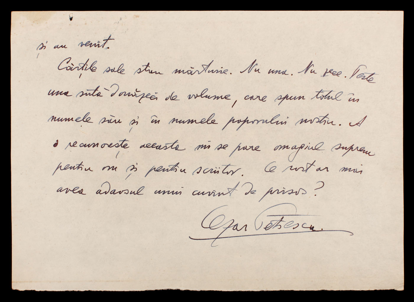 86. Manuscris al lui Cezar Petrescu, laudatio către Mihail Sadoveanu, cu ocazia împlinirii vârstei de 80 de ani, în plicul original, 1960 (7 file)
