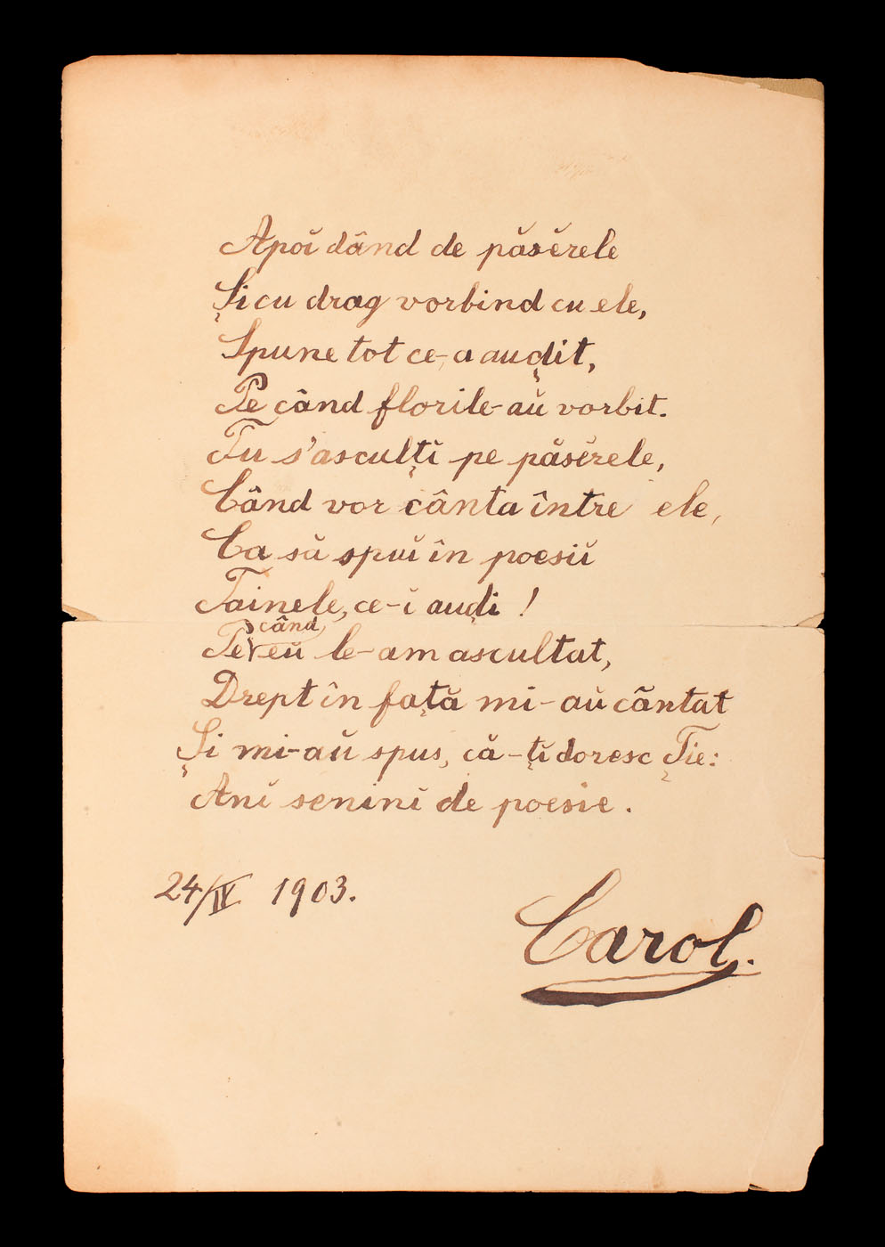 54. Manuscris al principelui Carol, poezie dedicată mătuşii sale, raritate, piesă de colecţie, 1903