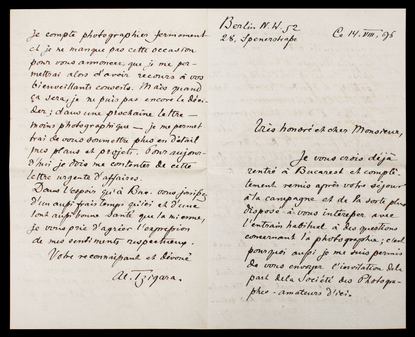 131. Pereche de scrisori ale lui Alexandru Tzigara-Samurcaș către Alexandru Ioan ("Zizin") Cantacuzino, despre proiecte culturale, în plicuri originale, 1894-1896