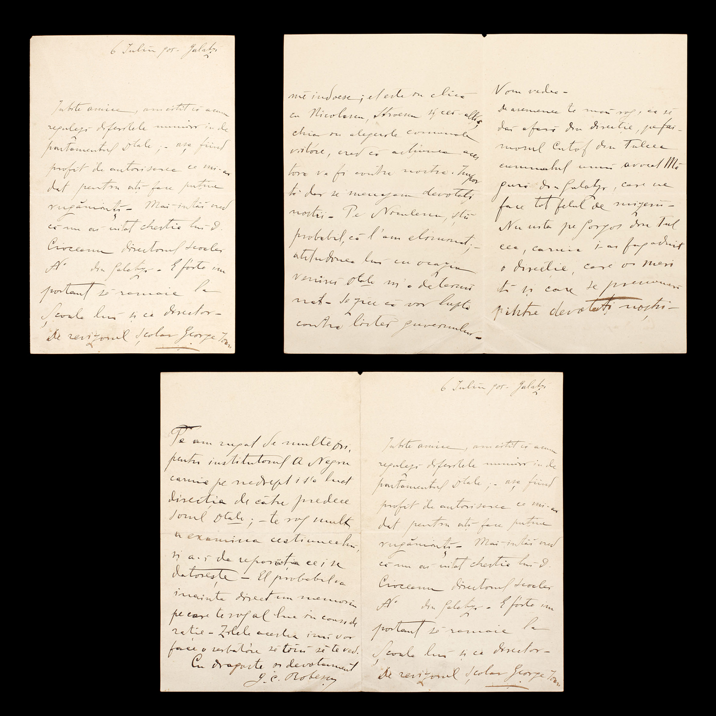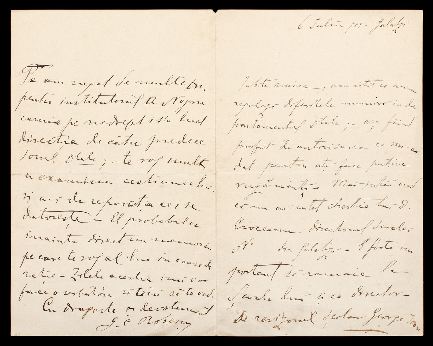 115. Scrisoare a lui Gheorghe Robescu, primar de Galați (fost deputat liberal), conținând intervenții pentru numiri în funcții în școlile din oraș, Galați, 6 iulie 1905 (2 file)