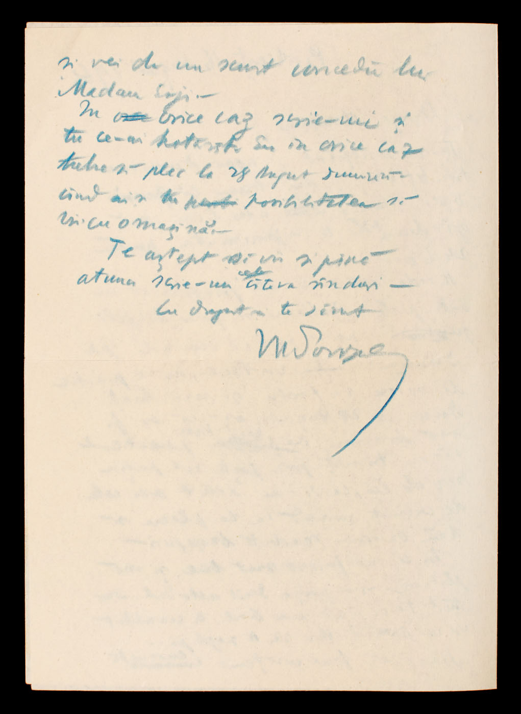 97. Scrisoare a lui Mihail Sorbul adresată soţiei, însoţită de plicul original, 1966