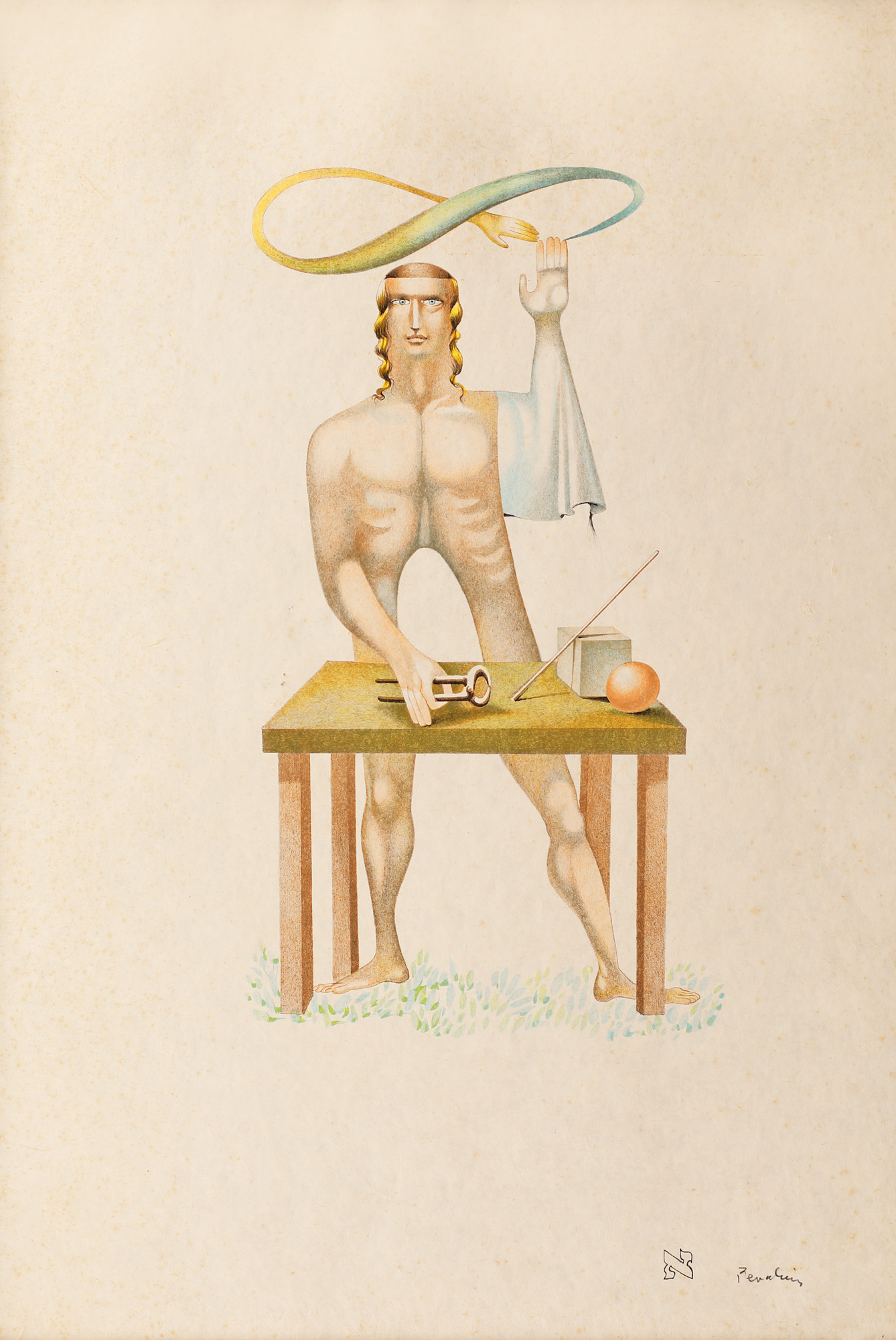semnat dreapta jos, în creion, "Perahim"