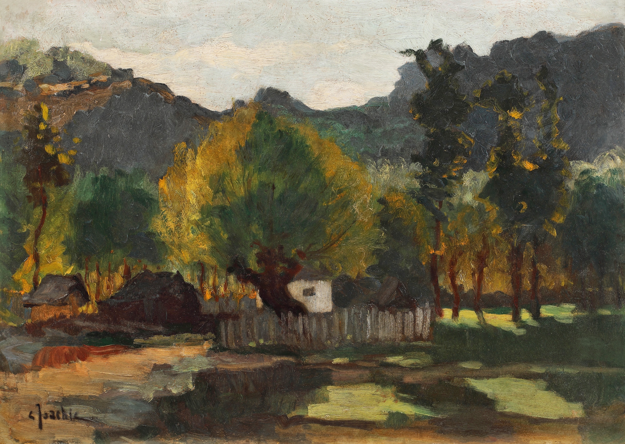 semnat stânga jos, cu negru, "C. Isachie"