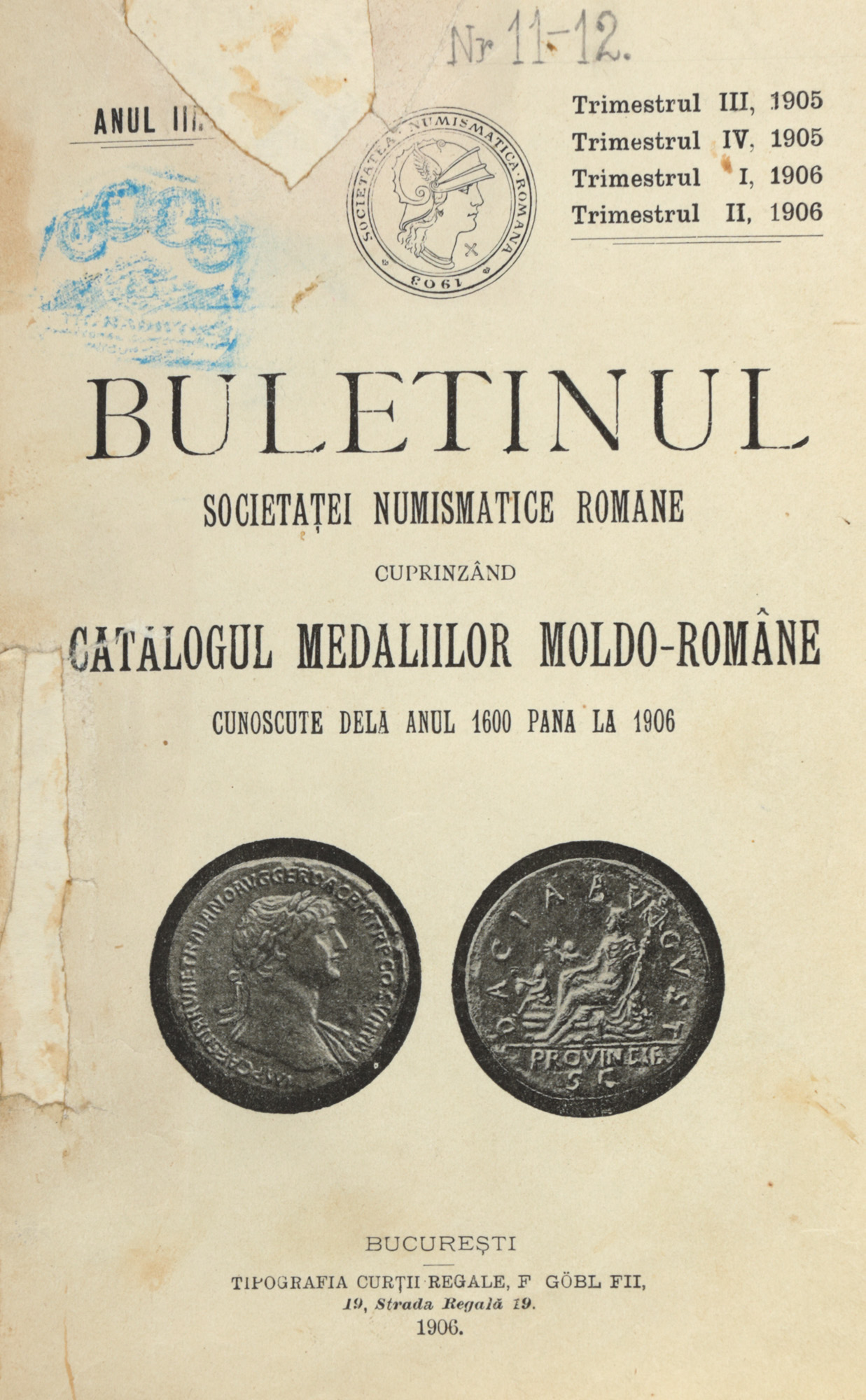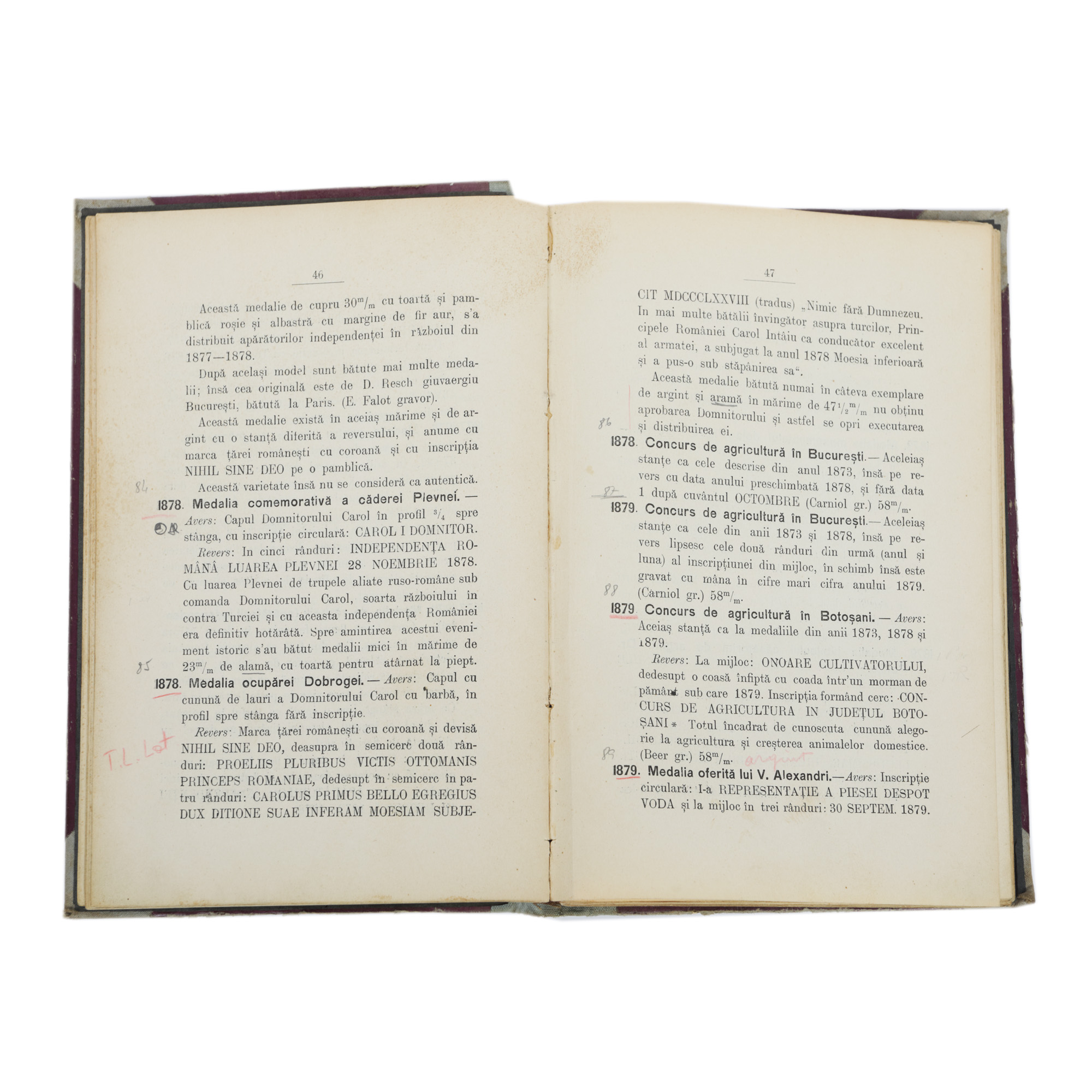 152. ”Buletinul Societății Numismatice Române - Catalogul Medaliilor Moldo-Române cunoscute de la anul 1600 până la 1906”, București, 1906, provine din biblioteca lui Theodor Radivon, bijutier, furnizor al Curții Regale