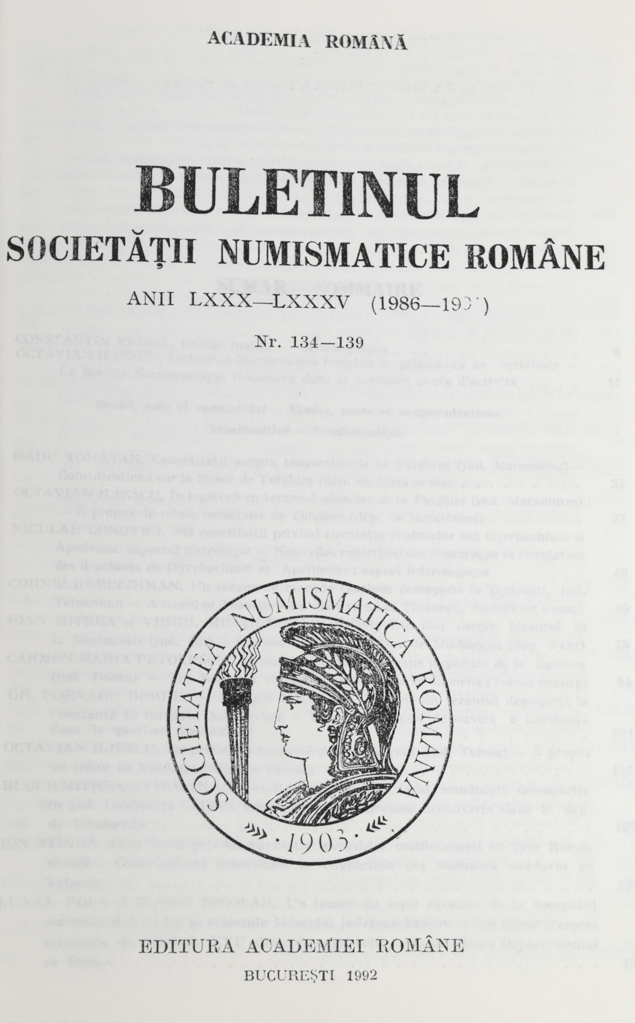 153. ”Buletinul Societății Numismatice Române”, cinci volume, București, 1935-1991