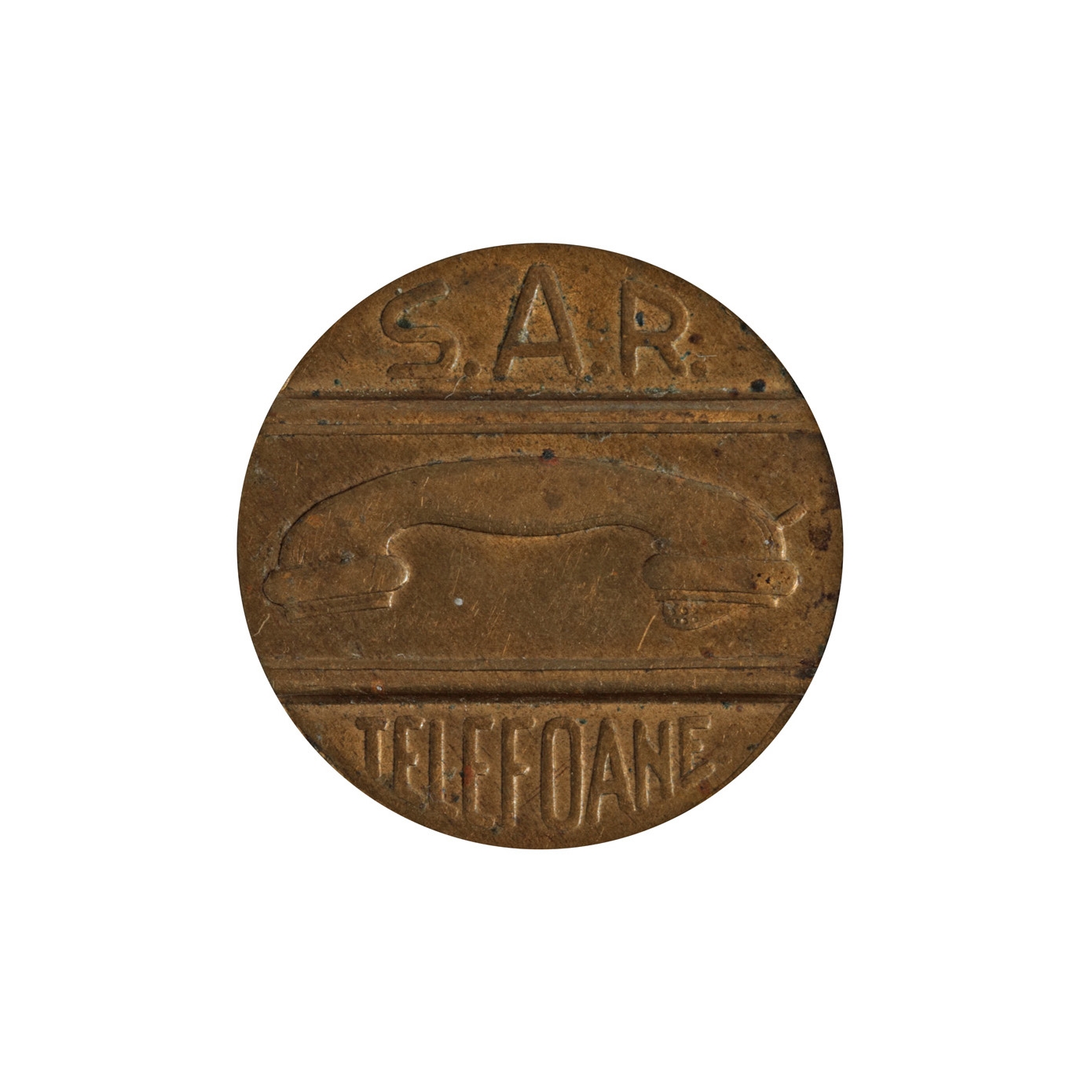 Este printre primele modele de jeton (fisă de telefon) care s-au utilizat în România de către Societatea Anonimă Română de Telefoane, o sucursală a firmei americane ITT, care a preluat rețeaua română de telefoane la 1 ianuarie 1931.