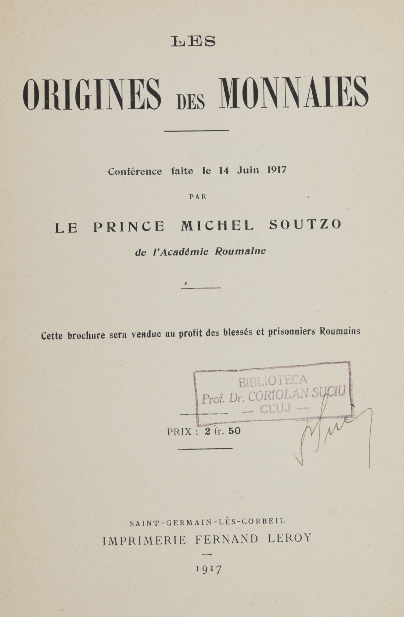 151. ”Les origines des monnaies”, de Prințul Mihail Suțu, franceză, Paris, 1917