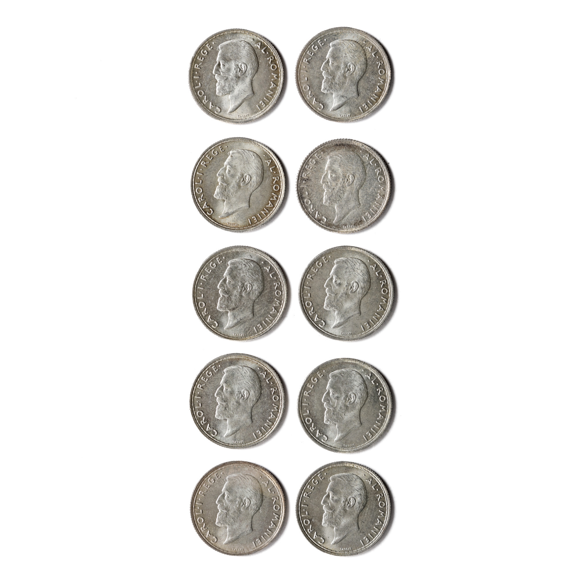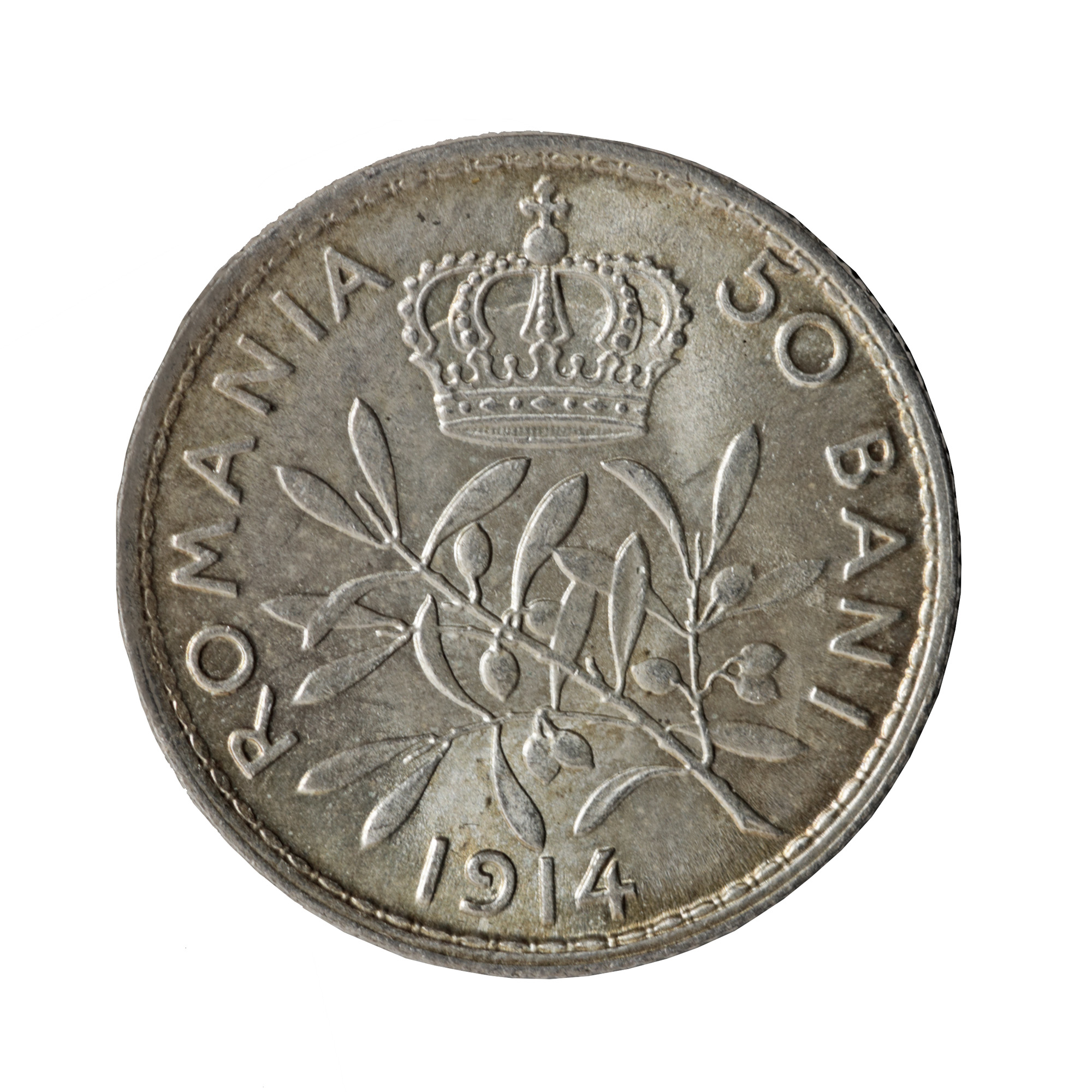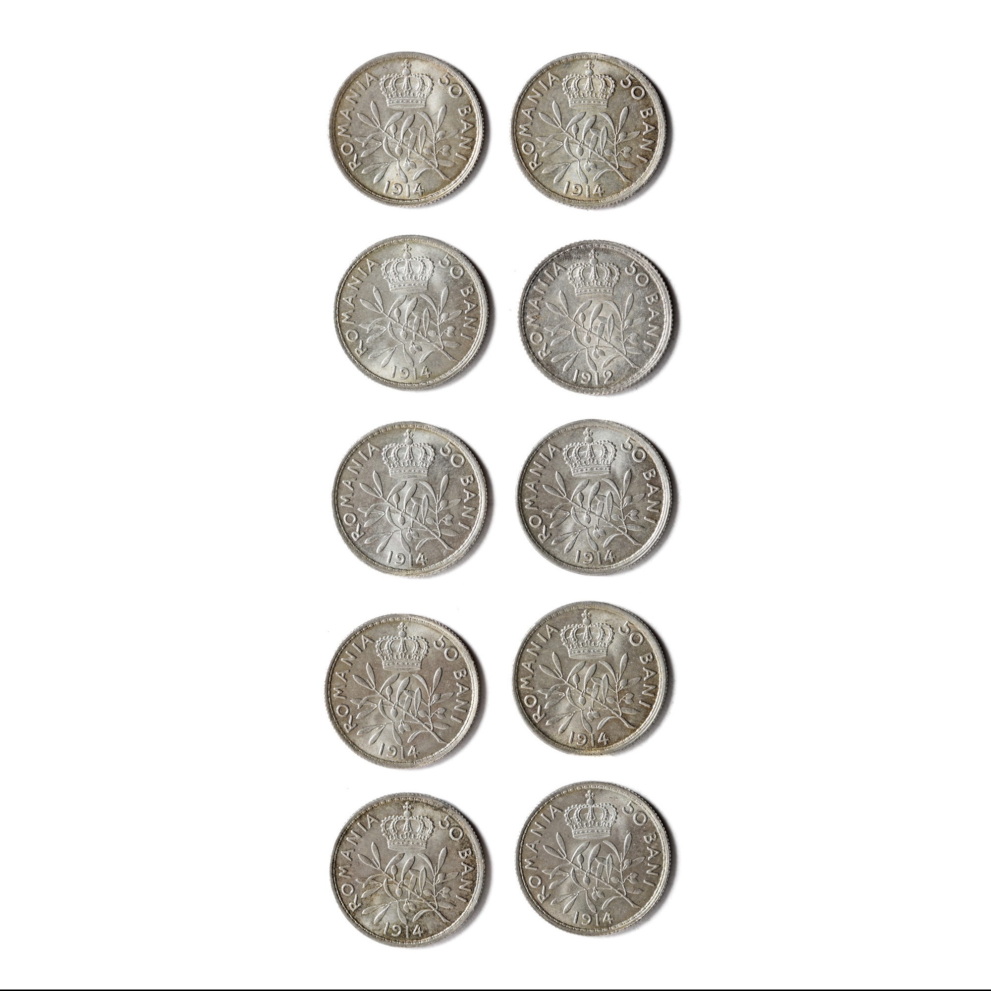 134. Lot format din zece de monede necirculate de 50 Bani 1914, argint