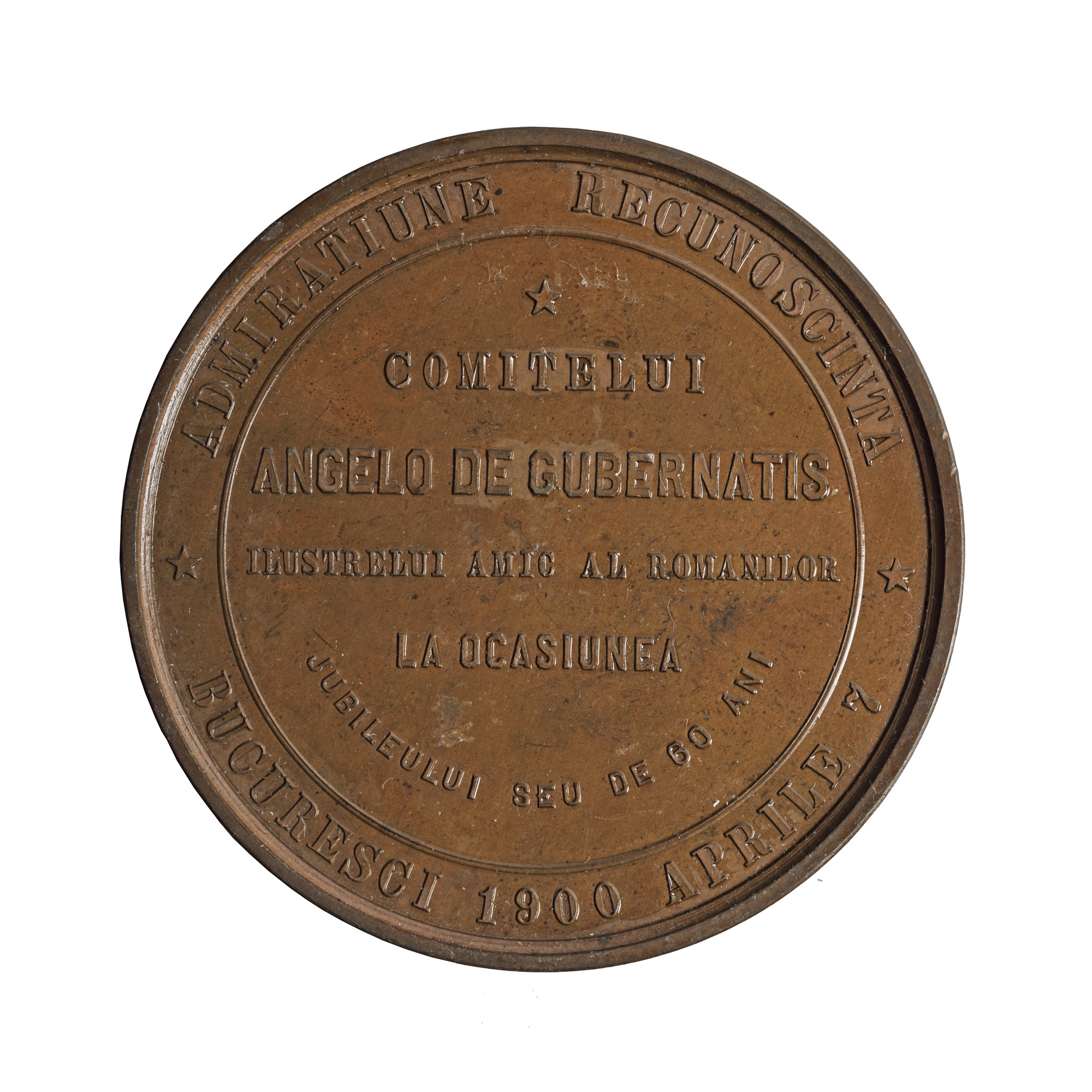78. Medalia ”Atheneul Român - Contelui Angelo de Gubernatis cu ocazia împlinirii vârstei de 60 de ani”, 1900, piesă rară