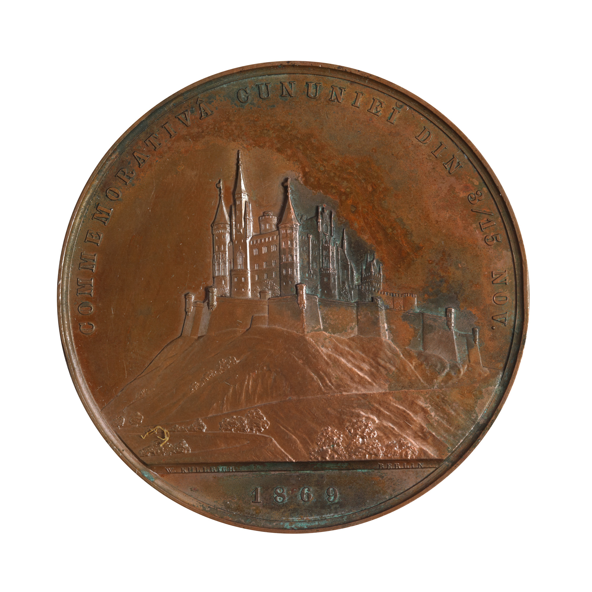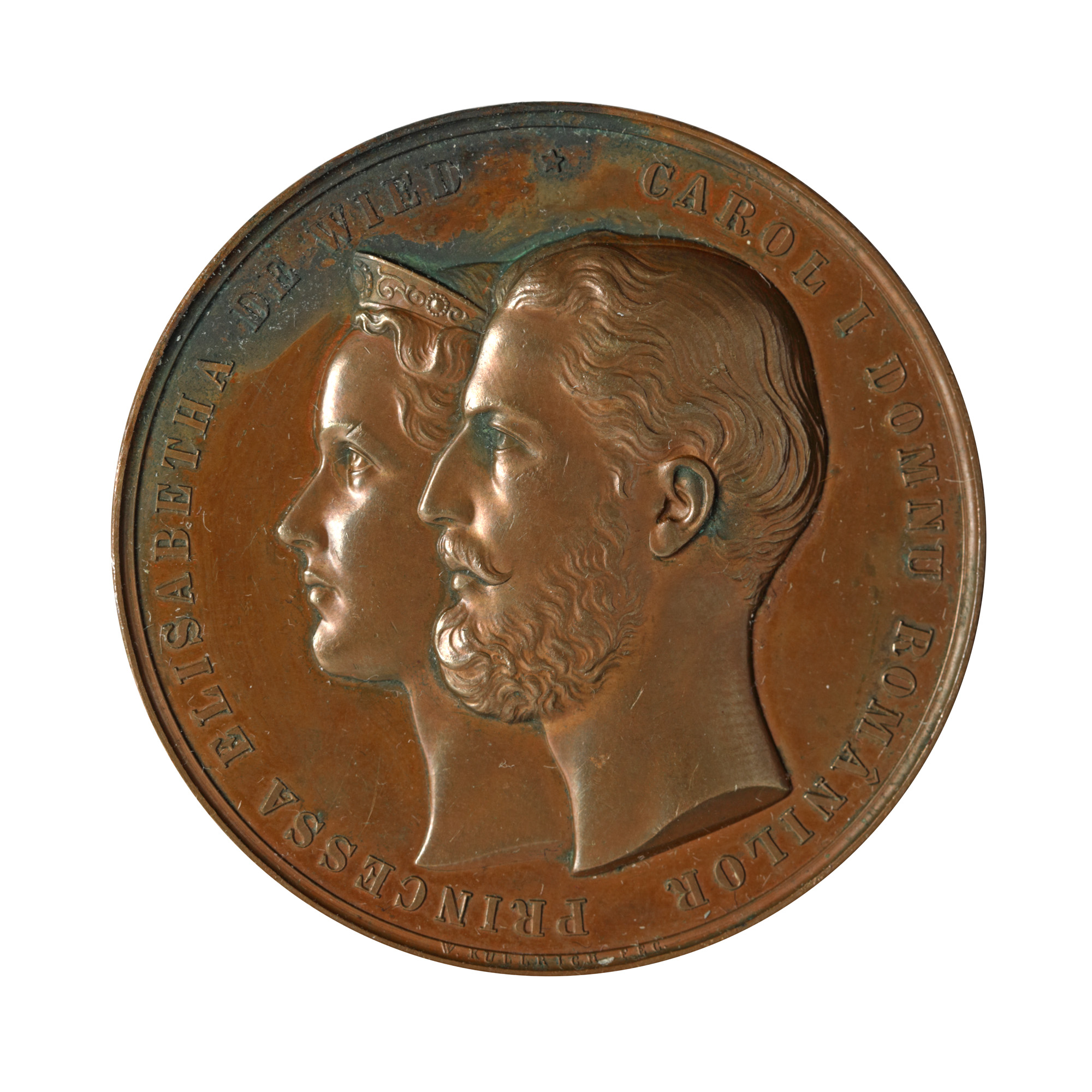 108. Medalia ”Cununia Elisabetei de Wied și Carol I Domnul României”, gravor Wilhelm Kullrich, Berlin, octombrie 1869