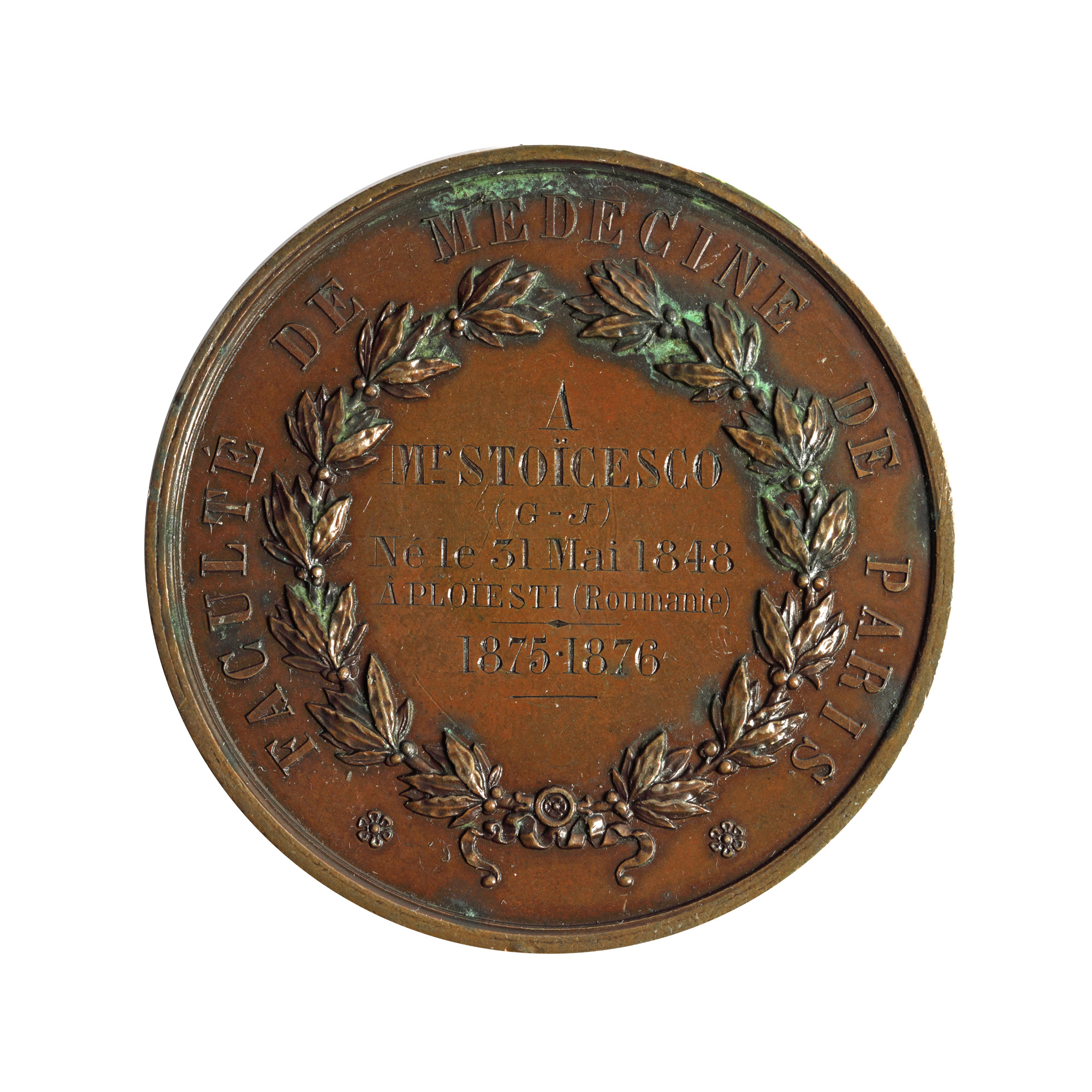 97. Medalia ”Facultatea de Medicină din Paris”, acordată lui A. Stoicescu, gravor E. Dubois, 1876