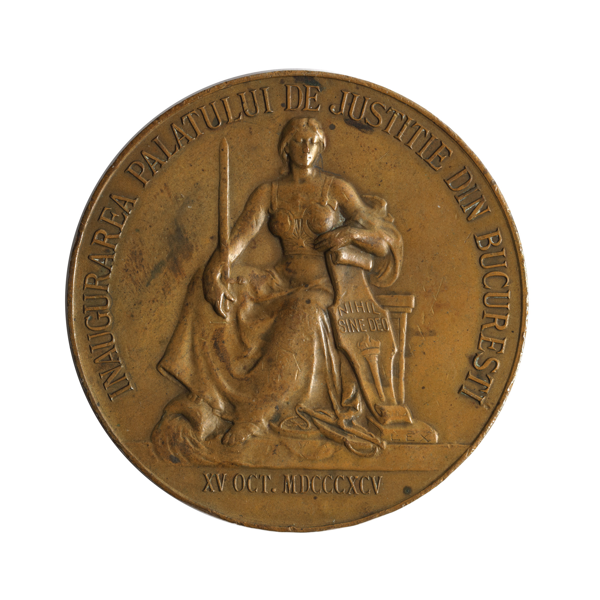91. Medalia ”Inaugurarea Palatului de Justiție din București”, gravor C. Stelmans, 1895