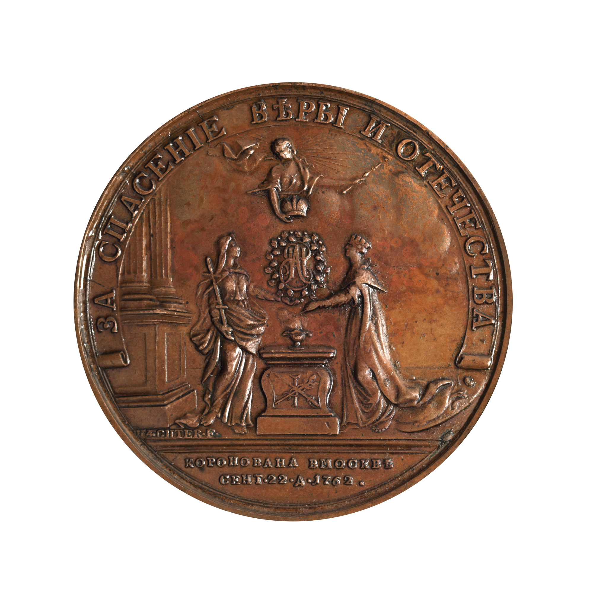 88. Medalia ”Încoronarea Ecaterinei II, Țarină a Rusiei”, gravor T. Ivanov și J.G. Waechter, 1762