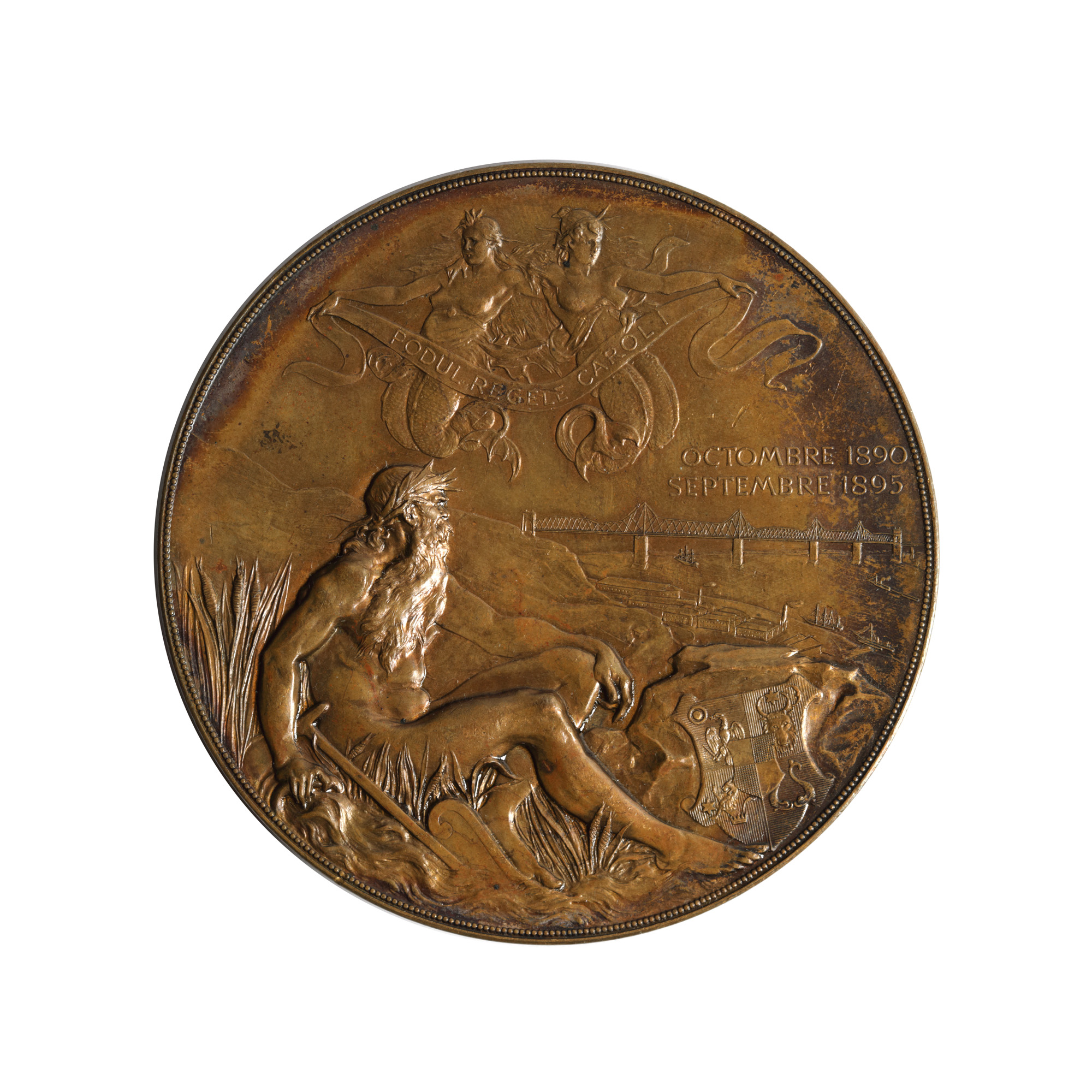 105. Medalia ”Podul Regele Carol I, octombrie 1890 - septembrie 1895”, gravor A. Scharff, Viena, 1895