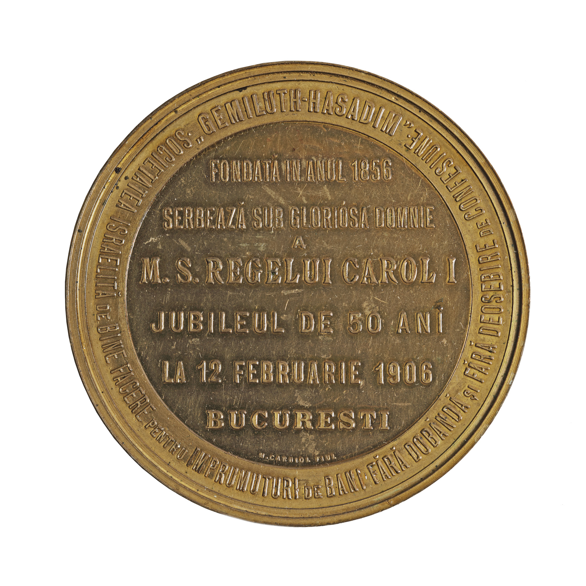 81. Medalia ”Societatea israelită de binefacere - jubileul de 50 de ani”, gravor Carniol Fiul, 1906