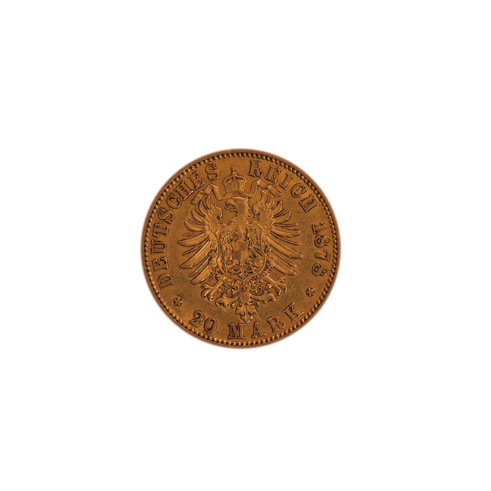 203. Monedă 20 Mărci 1878, Imperiul German, aur